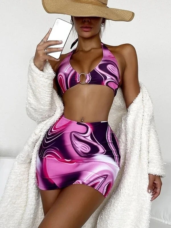 Сексуальные бикини, женский купальник, новинка 2022, купальник пуш-ап, пляжная одежда, женские купальные костюмы с юбкой, пляжный комплект бикини для бассейна