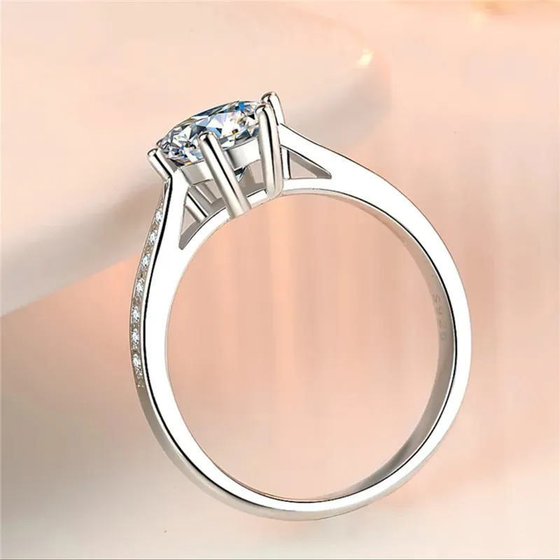 Женское классическое кольцо из серебра 18 К с муассанитом 1-5 карат