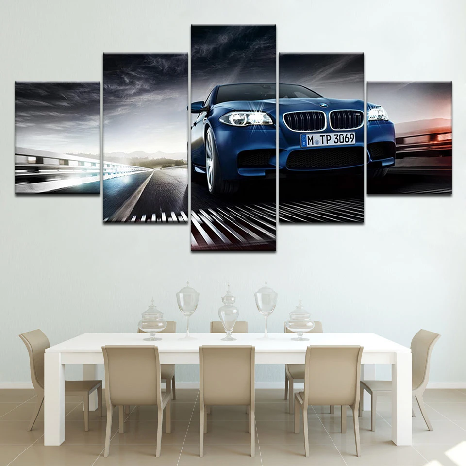 Модульный настенный плакат BMW, декоративная рамка для гостиной, 5 панелей