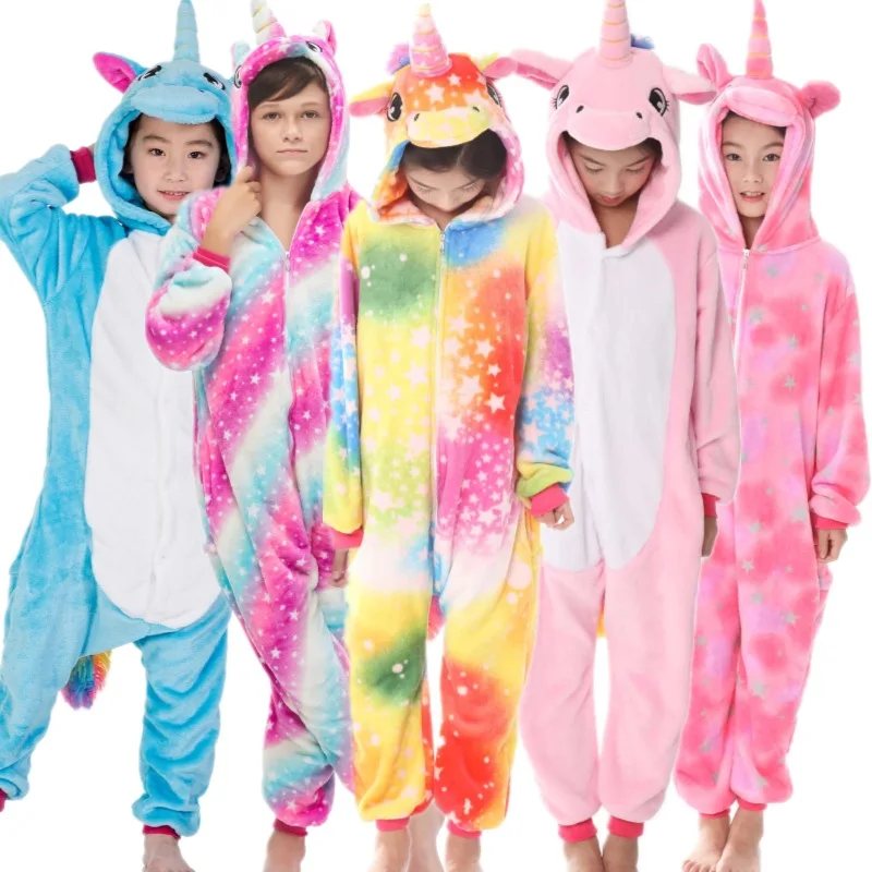 Детские пижамы-кигуруми в виде единорога, детские пижамы-комбинезон...