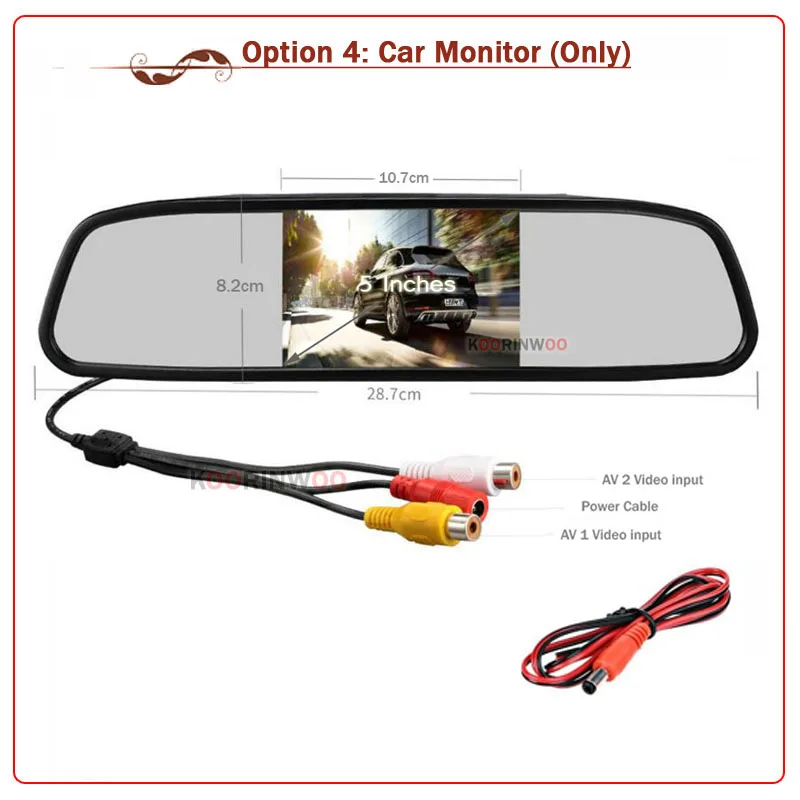 С 2 входными портами видео, белый видеокабель подключается к автомобильной камере заднего вида, желтый подключается к DVD или VCD.При парковке автомобиля изображение заднего вида автоматически появляется на экране.Разработан с помощью кнопок меню, яркость/Контрастность/оттенок/язык регулируется.Поддерживает автомобильный DVD, VCD, камеру и другое видео оборудование.Простая установка без повреждения любых частей автомобиля: просто закрепите оригинальное зеркало.Простая установка, не повреждая любые части автомобиля, закрепите оригинальное зеркалоНет аудио входа или выходаХарактеристики: