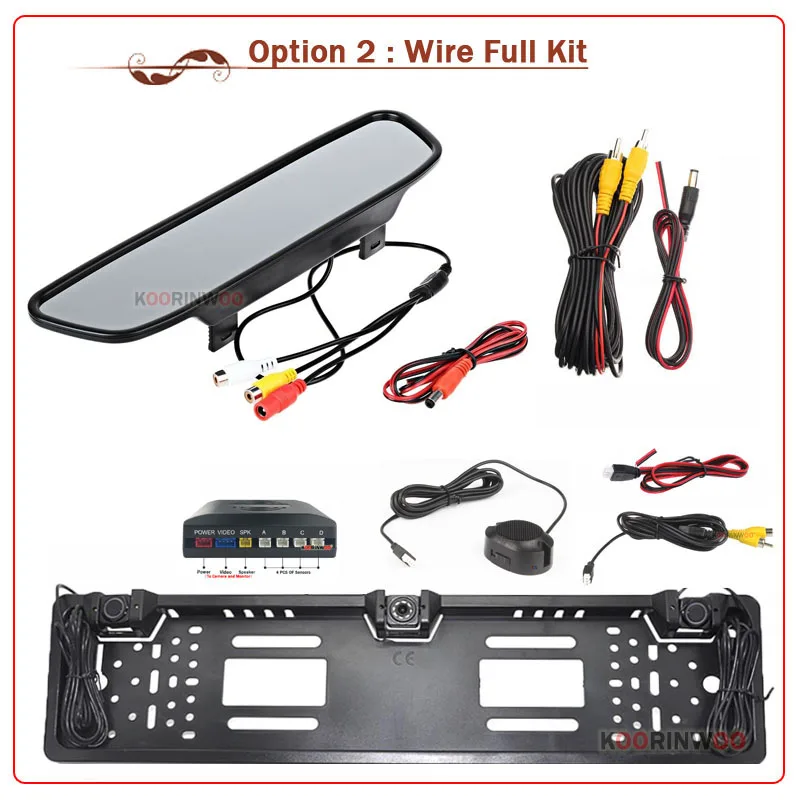Koorinwoo без дрели! Европейская интеллектуальная система Lincense для автомобилей, датчики, зеркало 5 дюймов, камера заднего вида, динамическая траектория, парковка