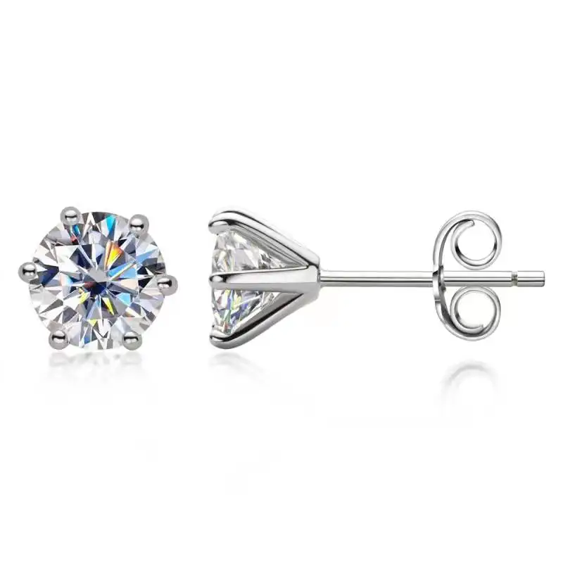 Серьги классические с бриллиантами, 6 зубьев, 1 карат, 6,5 мм, D цвета, VVS1