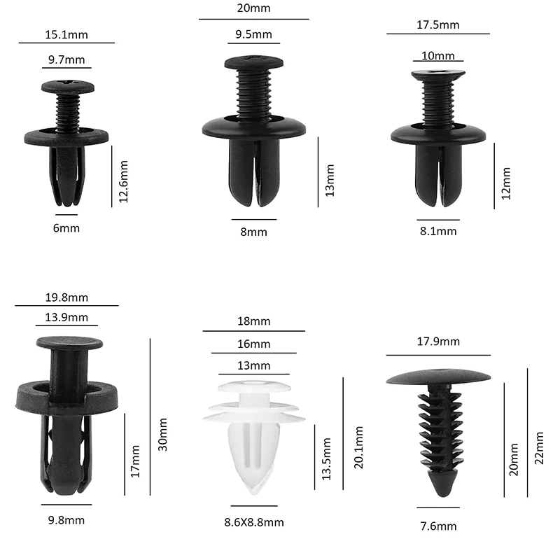 6 размеров , 100 шт ., автомобильный крепежный зажим , смешанный фи...