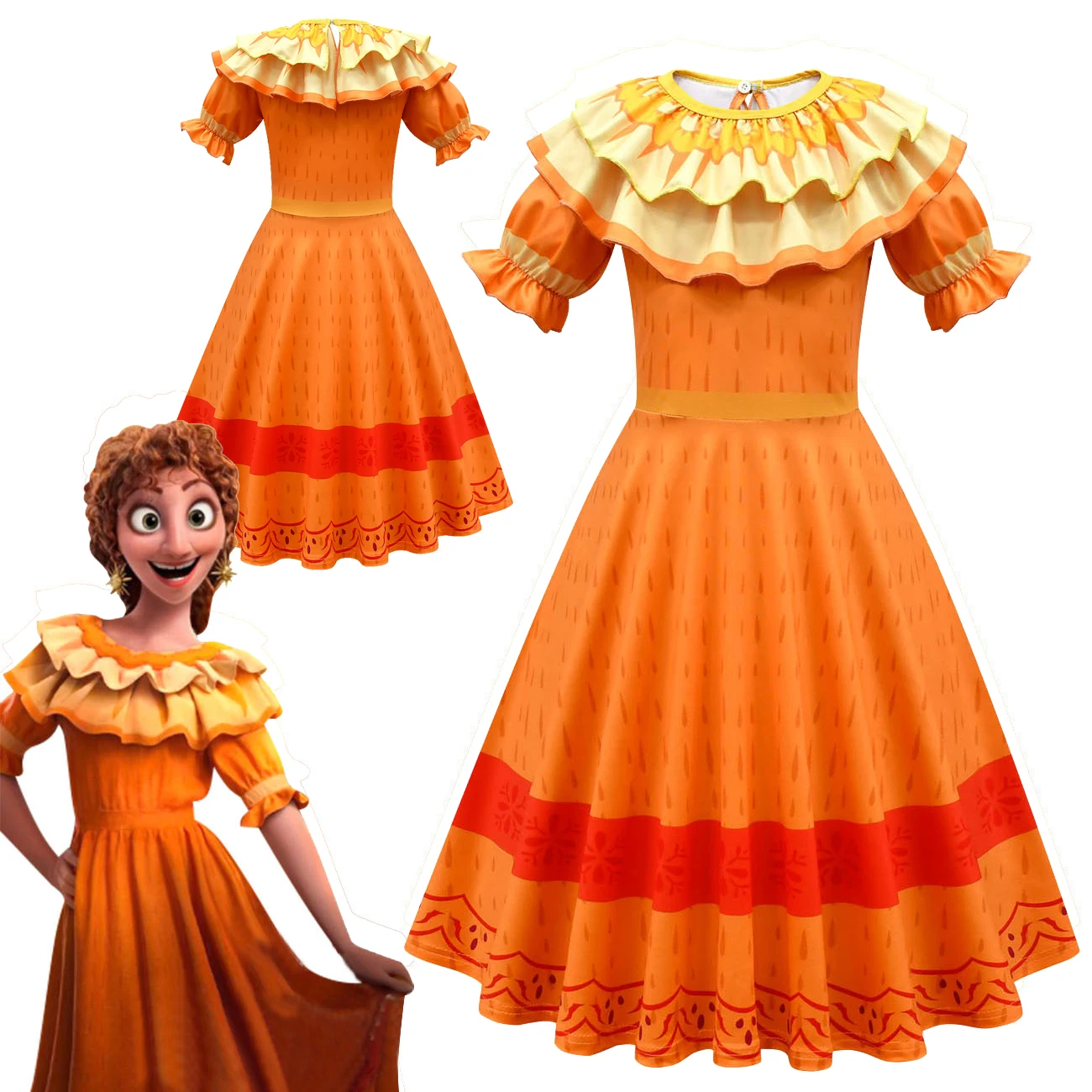 Платье принцессы оранжевое с оборками для девочек, костюм для косплея эньканто миракель мадригал из аниме, длинный халат, одежда для вечеринки на день рождения и карнавала