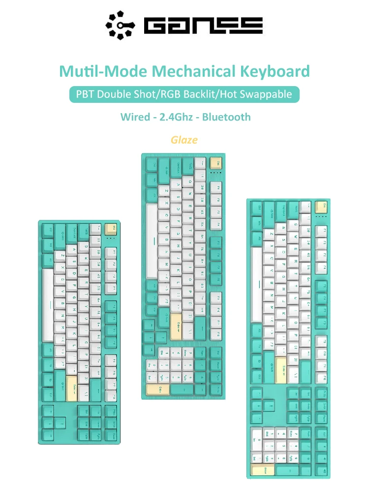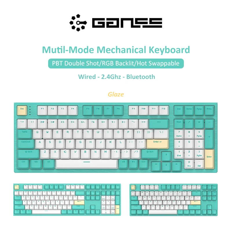 Здравствуйте, GANSS, глазурь, многорежимная RGB-клавиатура с подсветкой, механическая клавиатура, горячая переключение, клавиатура с клавишами клавиатуры, 87 98 108 клавиш, двойной выстрел