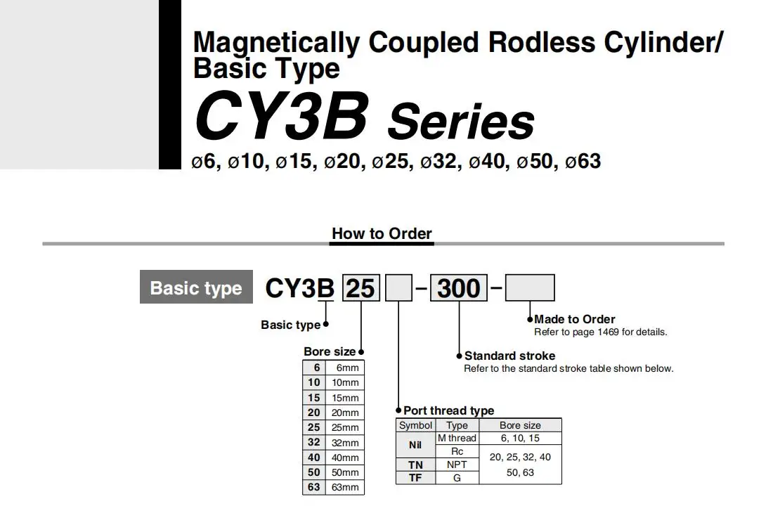 Номер моделиCY3B Series Magnetically Coupled Rodless Cylinder