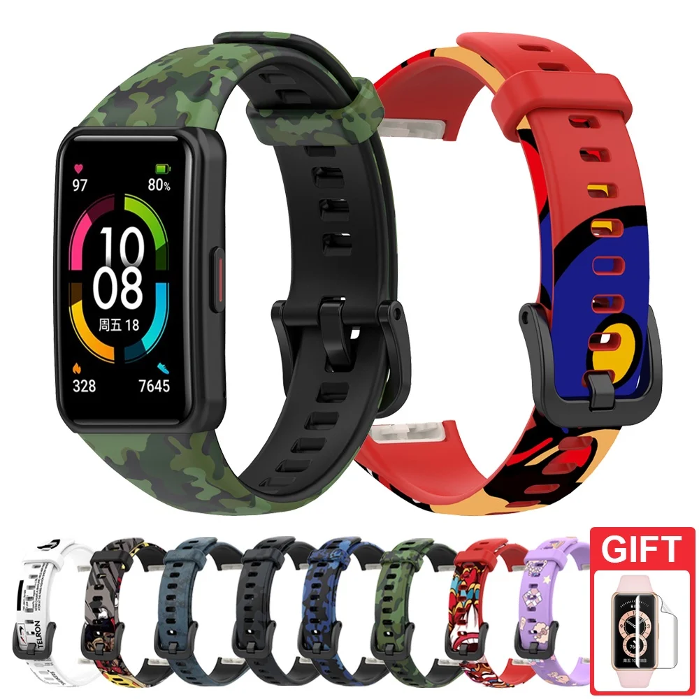 Силиконовый ремешок с принтом для Huawei Band 6Honor Band 6, аксесс...