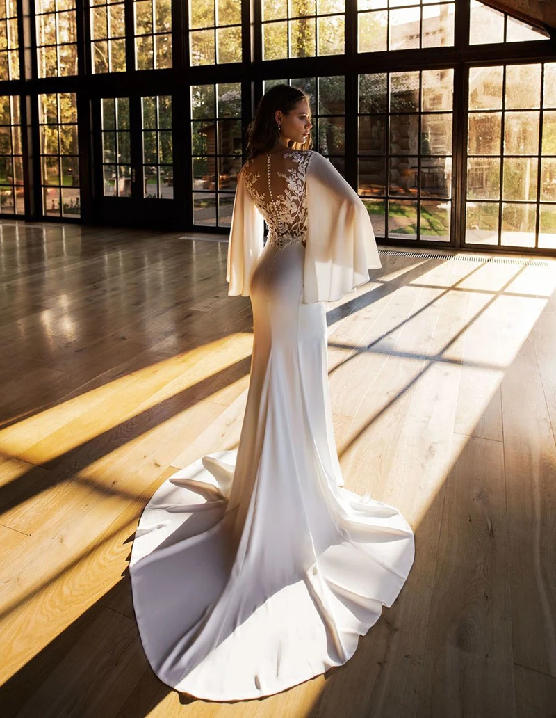 Женское свадебное платье с юбкой-годе, с круглым вырезом и рукавами-накидками