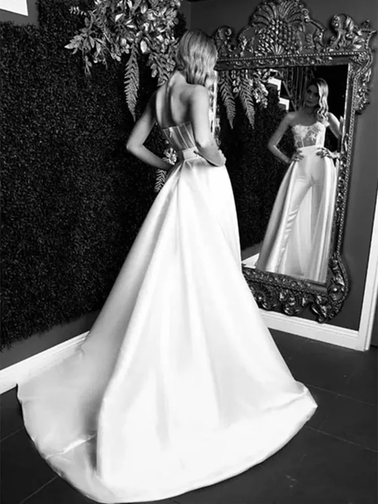 Женский Свадебный комбинезон со съемными брюками и шлейфом, 2 в 1