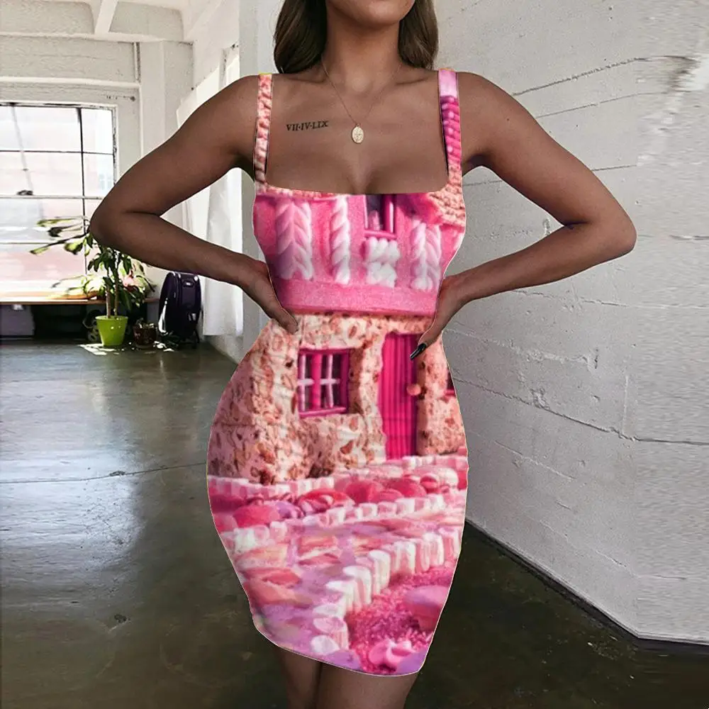 Женский мини-сарафан KYKU, розовый вечерний пляжный сарафан с 3D-принтом, лето 2019