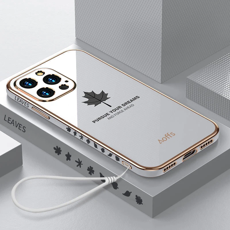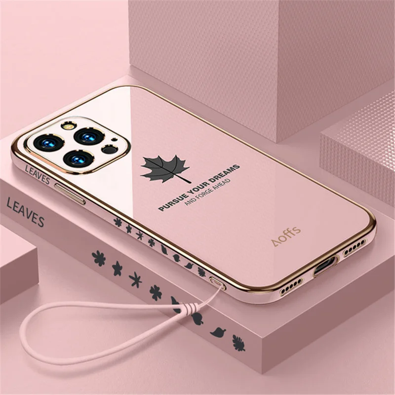 Чехол для телефона с квадратной рамкой и Кленовым листом для iPhone 13 11 12 Pro Max XS X XR 7 8 Plus