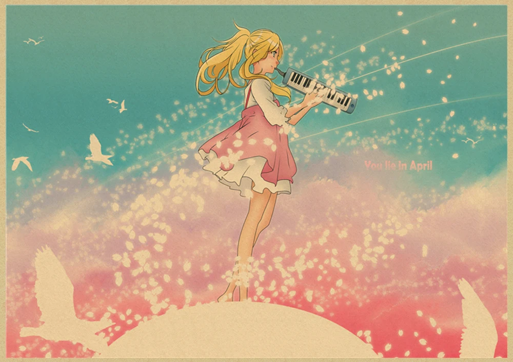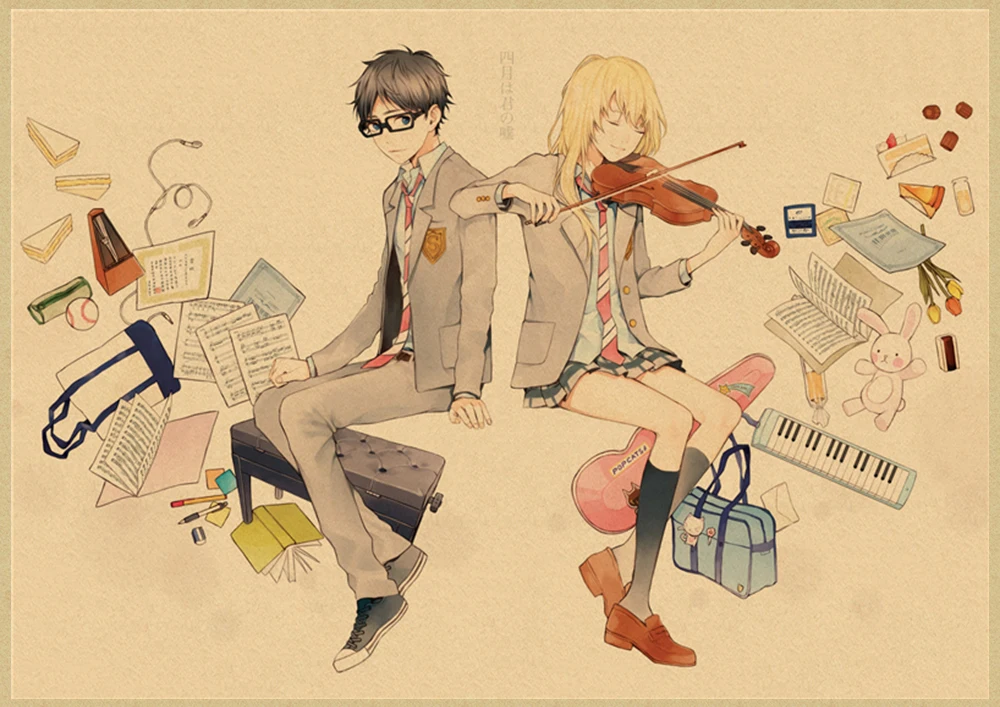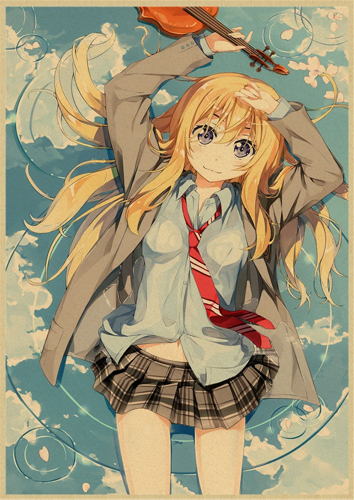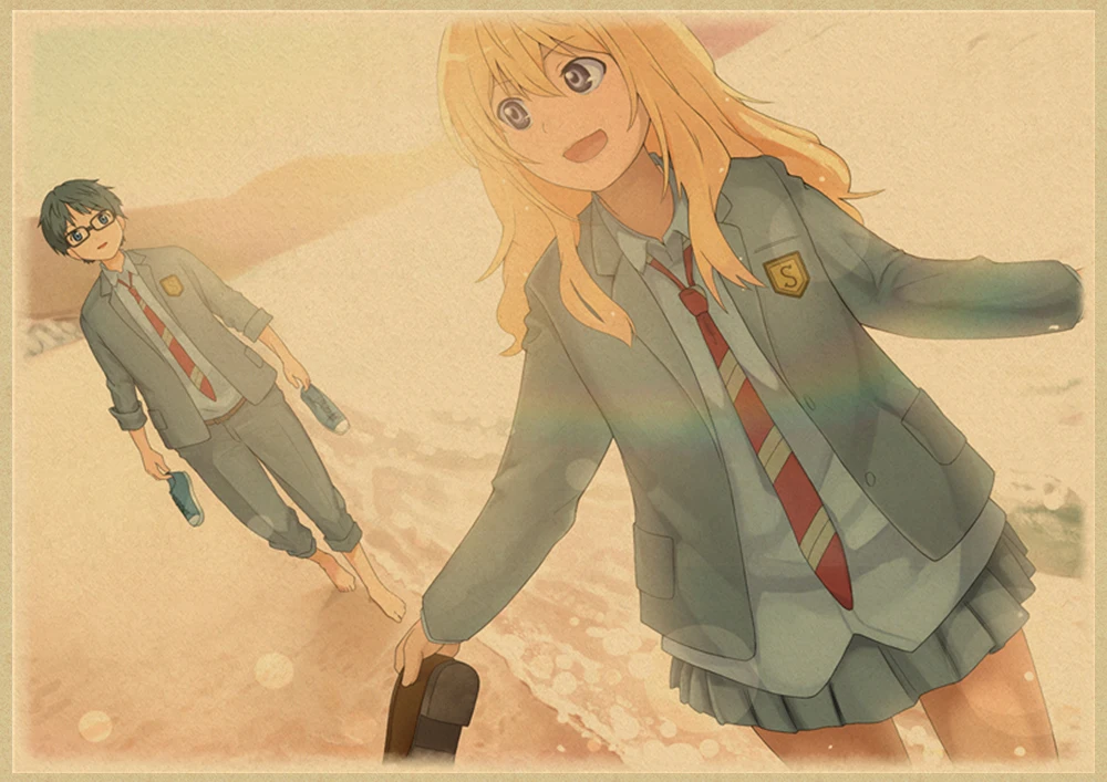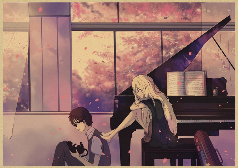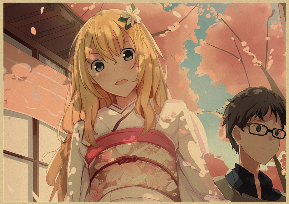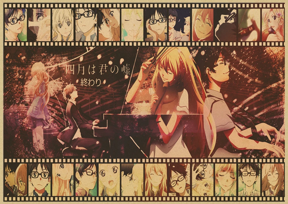 Японский постер манга и ложь в апреле, винтажная коричневая бумага, Высококачественная художественная живопись, домашний декор, настенные наклейки