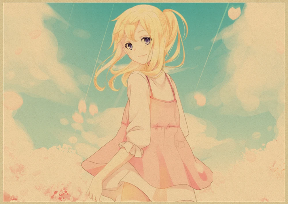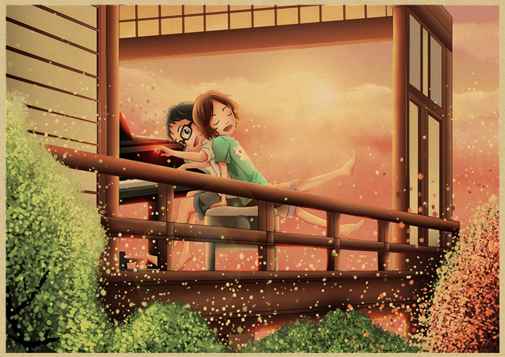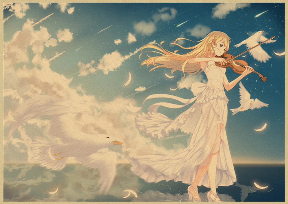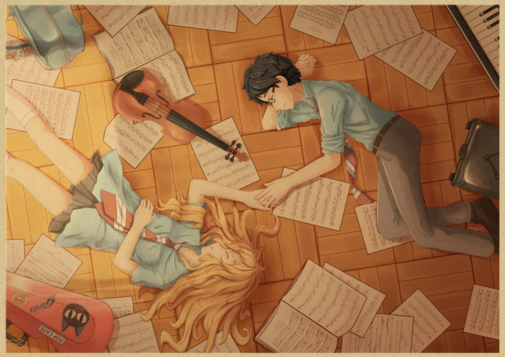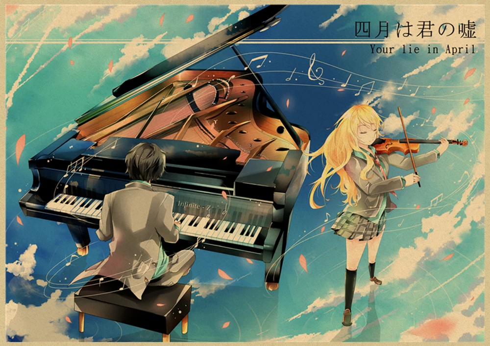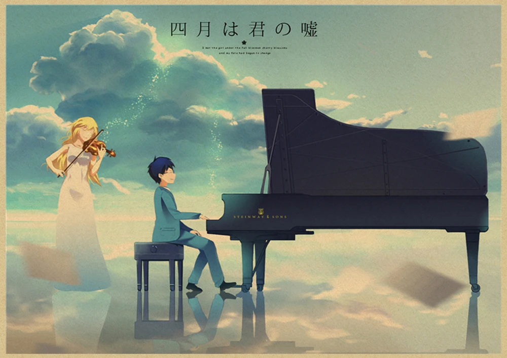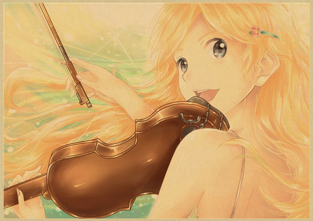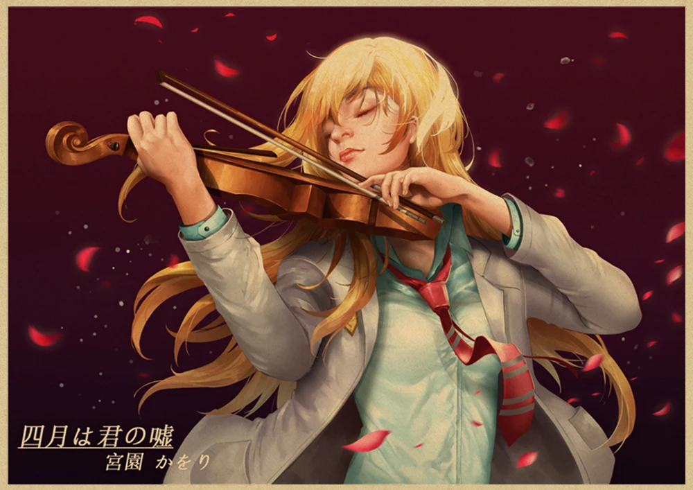 Японский постер манга и ложь в апреле, винтажная коричневая бумага, Высококачественная художественная живопись, домашний декор, настенные наклейки