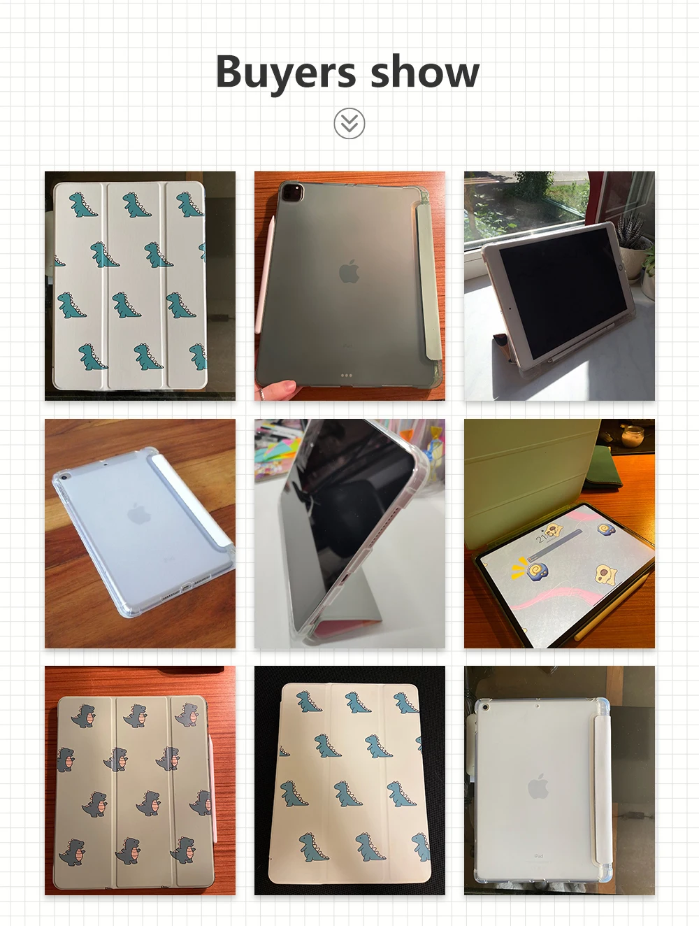 Спецификация <;br/> Силиконовая задняя крышка + чехол из искусственной кожи <;br/> Применимо к:<;br/>iPad Mini 4 (A1538 A1550)<;br/>iPad Mini 5 (A2133 A2126 A2125 A2124)<;br/>iPad Air 1 2 (A1474 A1475 A1476 A1566 A1567)<;br/>iPad 5th 6th (A1822 A1823 A1893 A1954)<;br/>iPad 10,2 дюйма 7th 8th (A2197 A2198 A2200 A2270 A2428 A2429 A2430)<;br/>iPad Air 4 (A2070 A2316 A2324 A2325)<;br/>iPad 11 дюймов Pro 2018 (A1980a2013 A1934 a1987)<;br/>iPad 11 дюймов Pro 2020 (A2228 A2068 A2230 A2231)<;br/>iPad Pro 12,9, Air 3, Pro 10,5 <;br/> Пожалуйста, подтвердите модель с таблицей ниже.<;br/> продукты показывают: обратите внимание, что наш продукт не включает карандаши для iPad. Только Чехол для iPad.<;br/> Продукты показывают: обратите внимание, что в наш продукт не входят карандаши для iPad. Только Чехол для iPad.<;br/> милый чехол с рисунком динозавра для ipad s<;br/> Встроенный держатель карандаша: вертикальное круглое отверстие для ручки, слот для карандаша, легко носить карандаш с устройством.<;br/> Автоматическое Пробуждение/спящий режим: более энергоэффективный.<;br/> Защита от падений: Высококачественная силиконовая задняя крышка может лучше защитить ваше устройство от падений и ударов <;br/>Slim & amp; легкий легкий дизайн для максимального удобства использования и комфорта <;br/> Точные вырезы: Идеально подходит для вашего iPad, И вы можете управлять им плавно, не вынимая iPad.<;br/> два угла подставки: режим просмотра и режим ввода, обеспечивают отличный опыт.<;br/> Отгрузка.<;br/> после получения вашего заказа, мы отправим в течение 24 часов, не более 48 часов, за исключением праздников. Если вы столкнулись с какими-либо проблемами во время процесса покупок, пожалуйста, свяжитесь с нами напрямую, мы будем рады Вам помочь.<;br/> Сервис <;br/> у нас есть профессиональная команда послепродажного обслуживания, которая поможет вам справиться с проблемами, с которыми вы столкнулись в процессе покупок. Мы ориентируемся на предоставление клиентам хорошего опыта покупок, поэтому, если у вас возникнут какие-либо проблемы, пожалуйста, свяжитесь с нами, мы обязательно дадим вам удовлетворительный ответ.