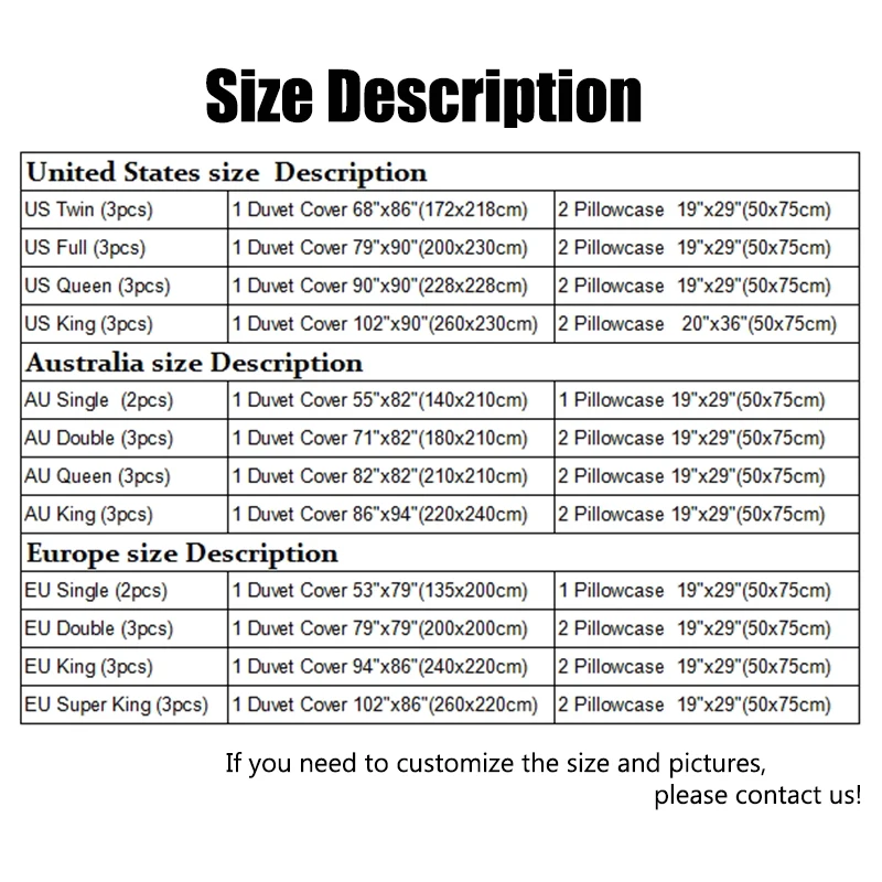 1.Если вам нужна дополнительная простыня, пожалуйста, свяжитесь с нами. 2. Пододеяльник используется для покрытия нашего одеяла или одеяла, без наполнения внутри. 3. Допускается погрешность в 1-4 см при ручном измерении 4. Если вы хотите другой размер, пожалуйста, свяжитесь с нами 5. Размеры разных стран отличаются, пожалуйста, проверьте их перед покупкой 6. В связи с использованием разных по светильник экране монитора фактический цвет товар точно такой же, как и цвет изделия на фото может быть s светильник ly отличается из-за характеристик монитора компьютера.