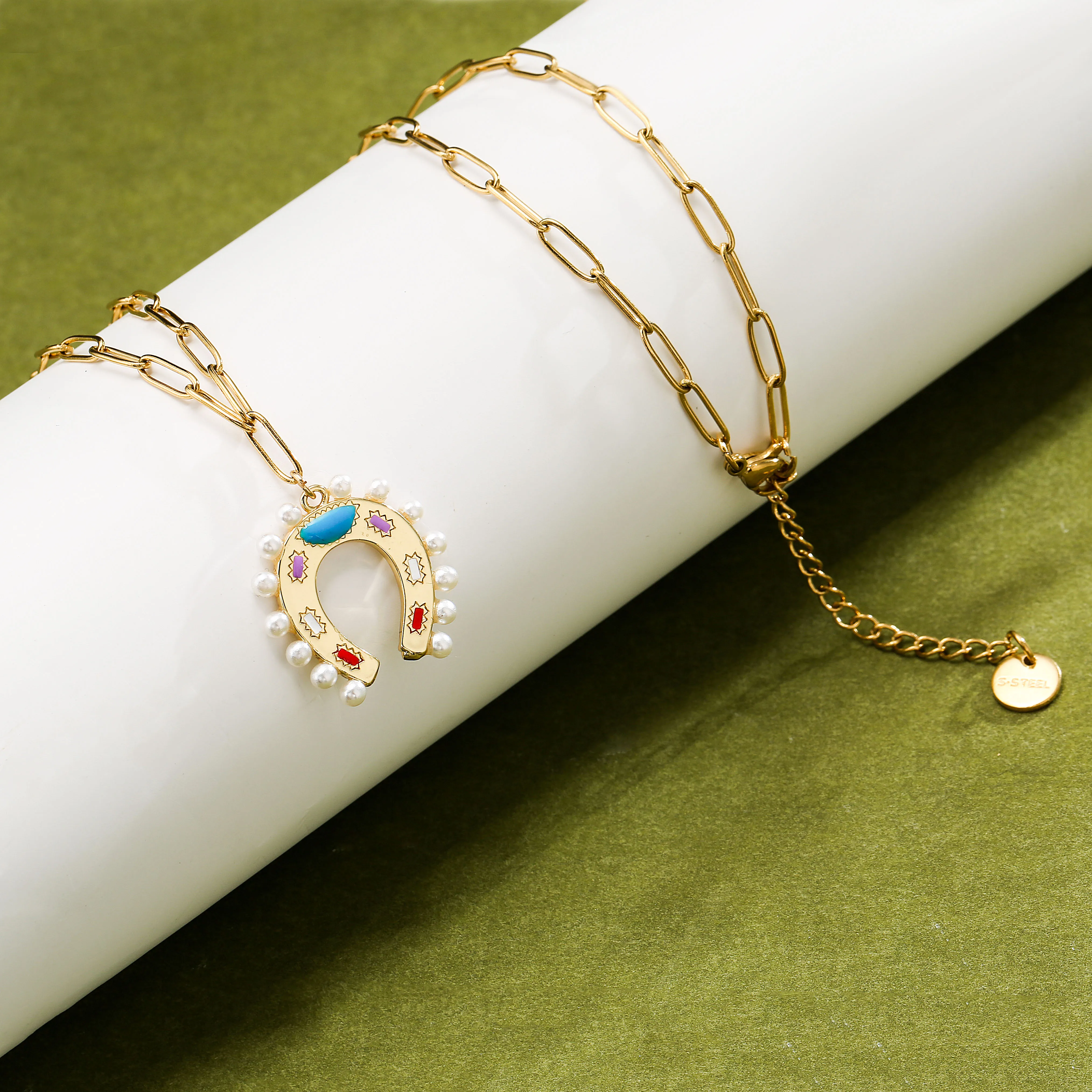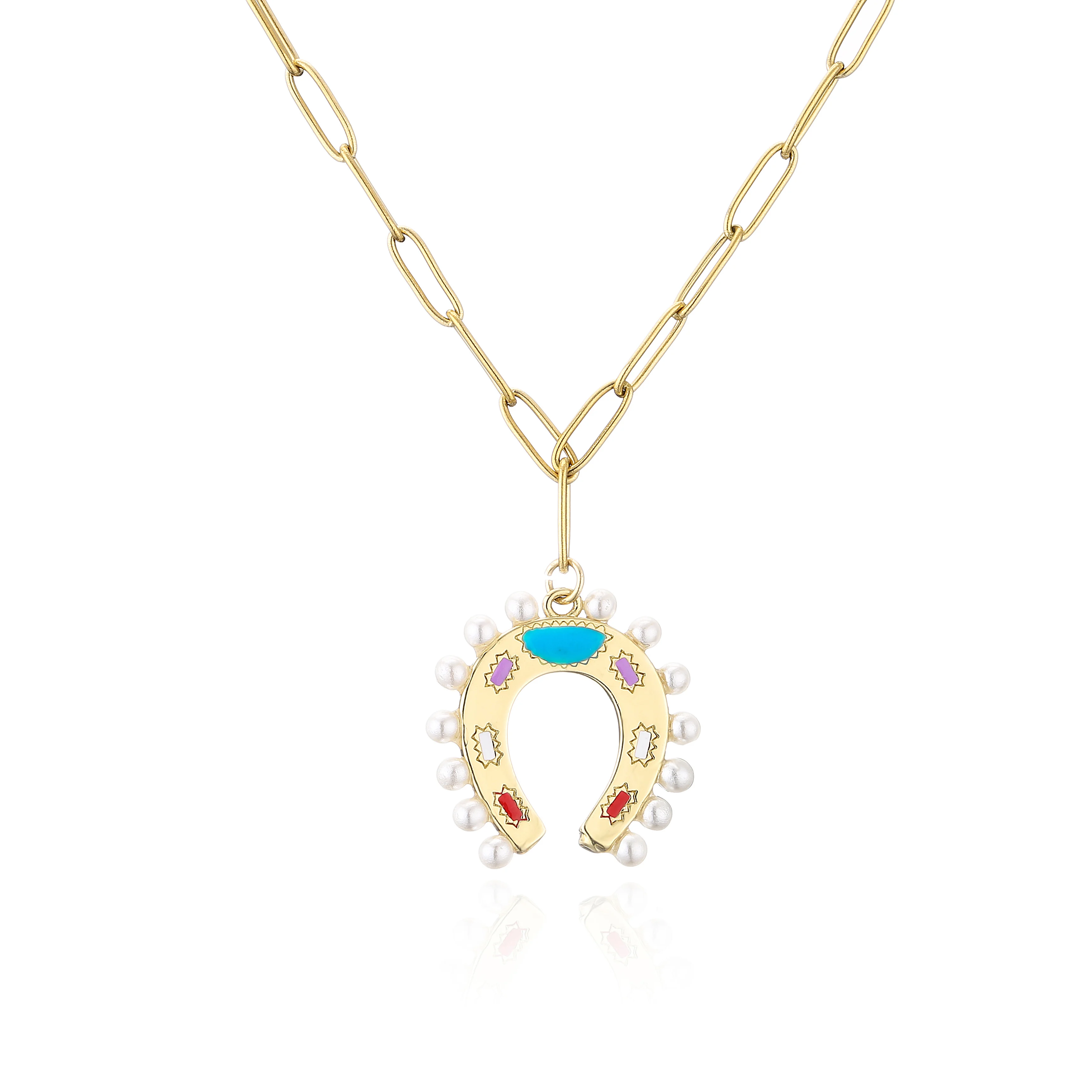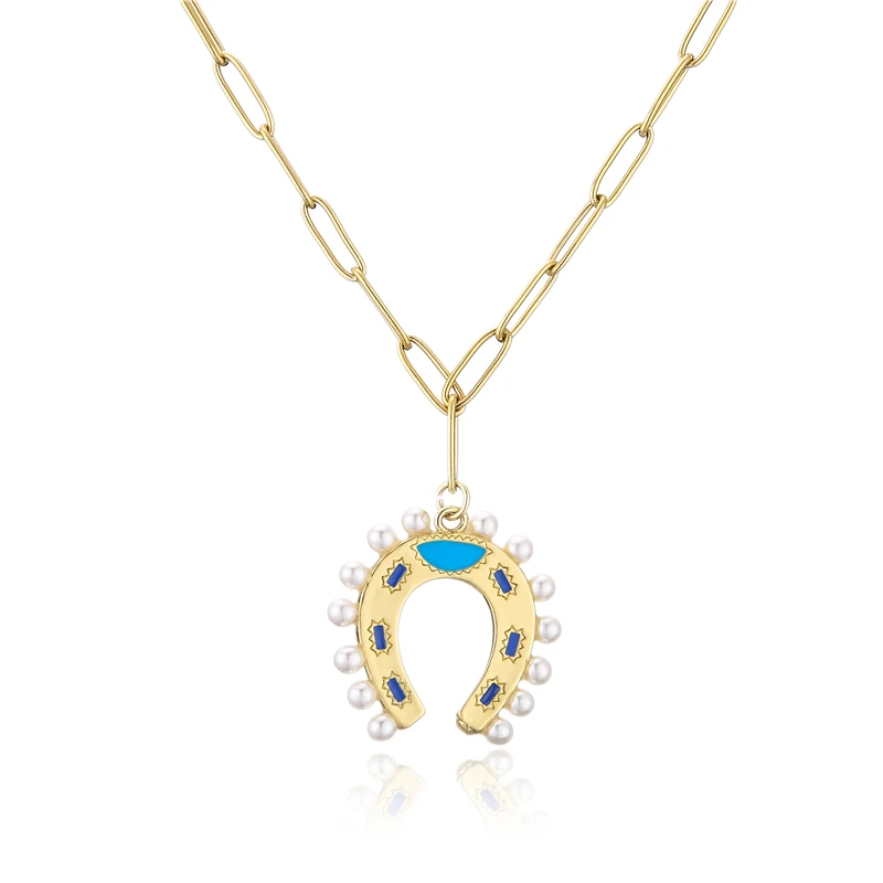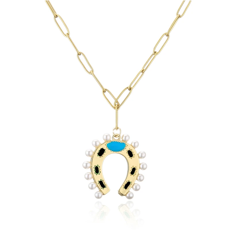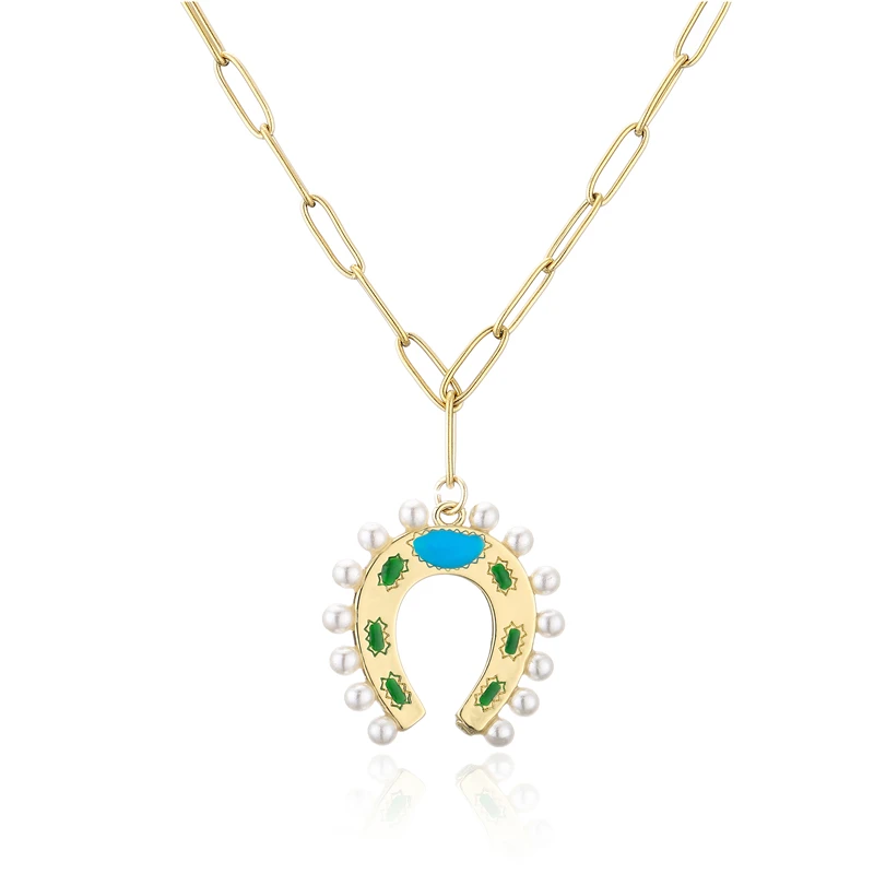 HECHENG, винтажное ожерелье с подковой из жемчуга для женщин, ожерелье с подвеской из сплава золотого цвета, ювелирные украшения для вечеринки