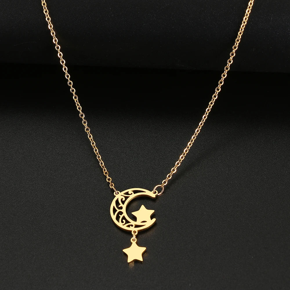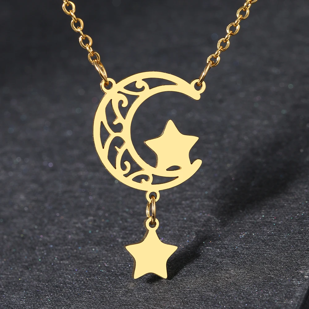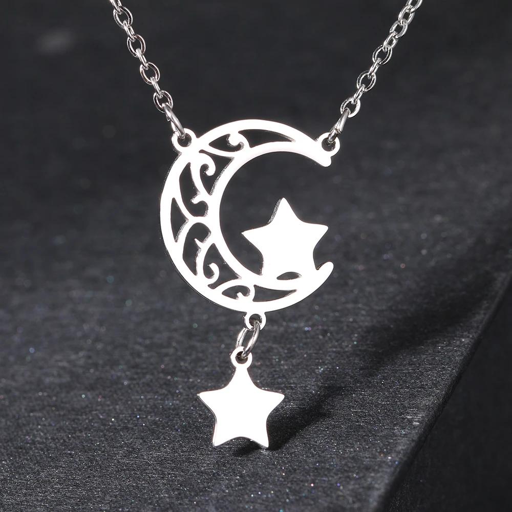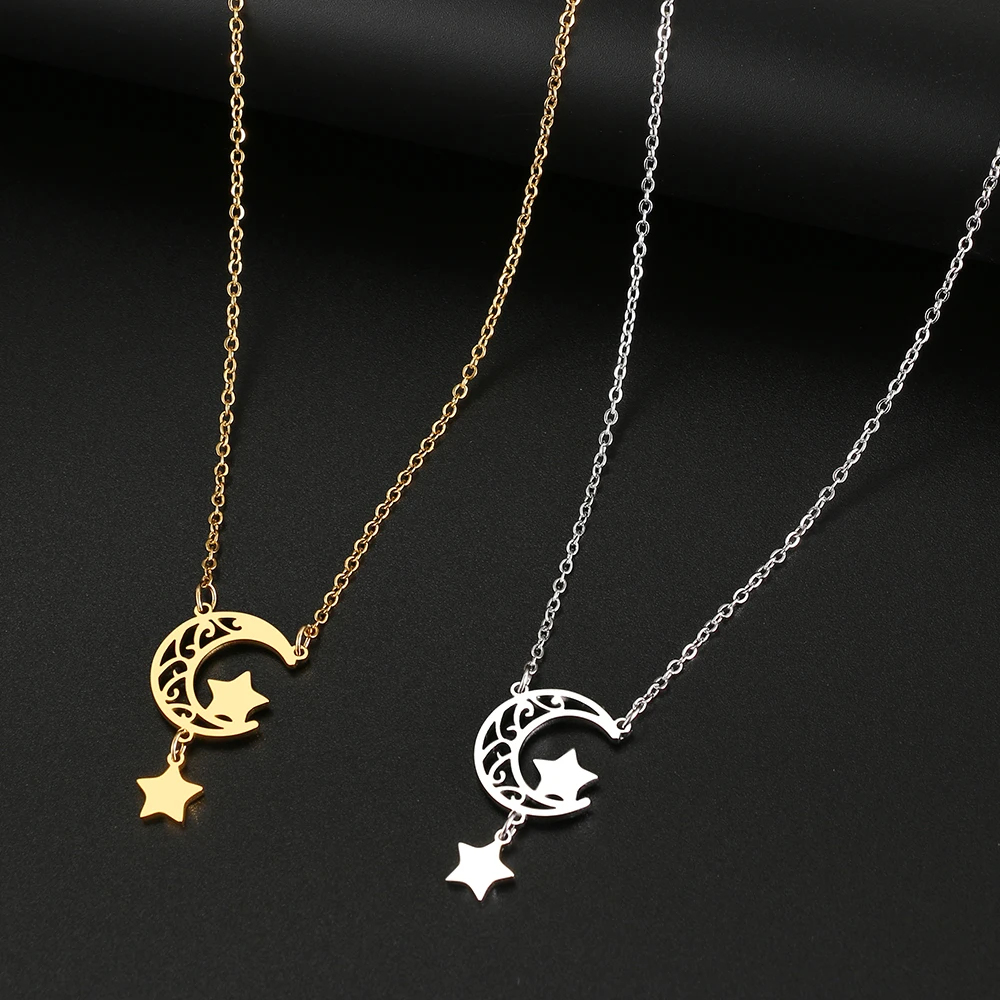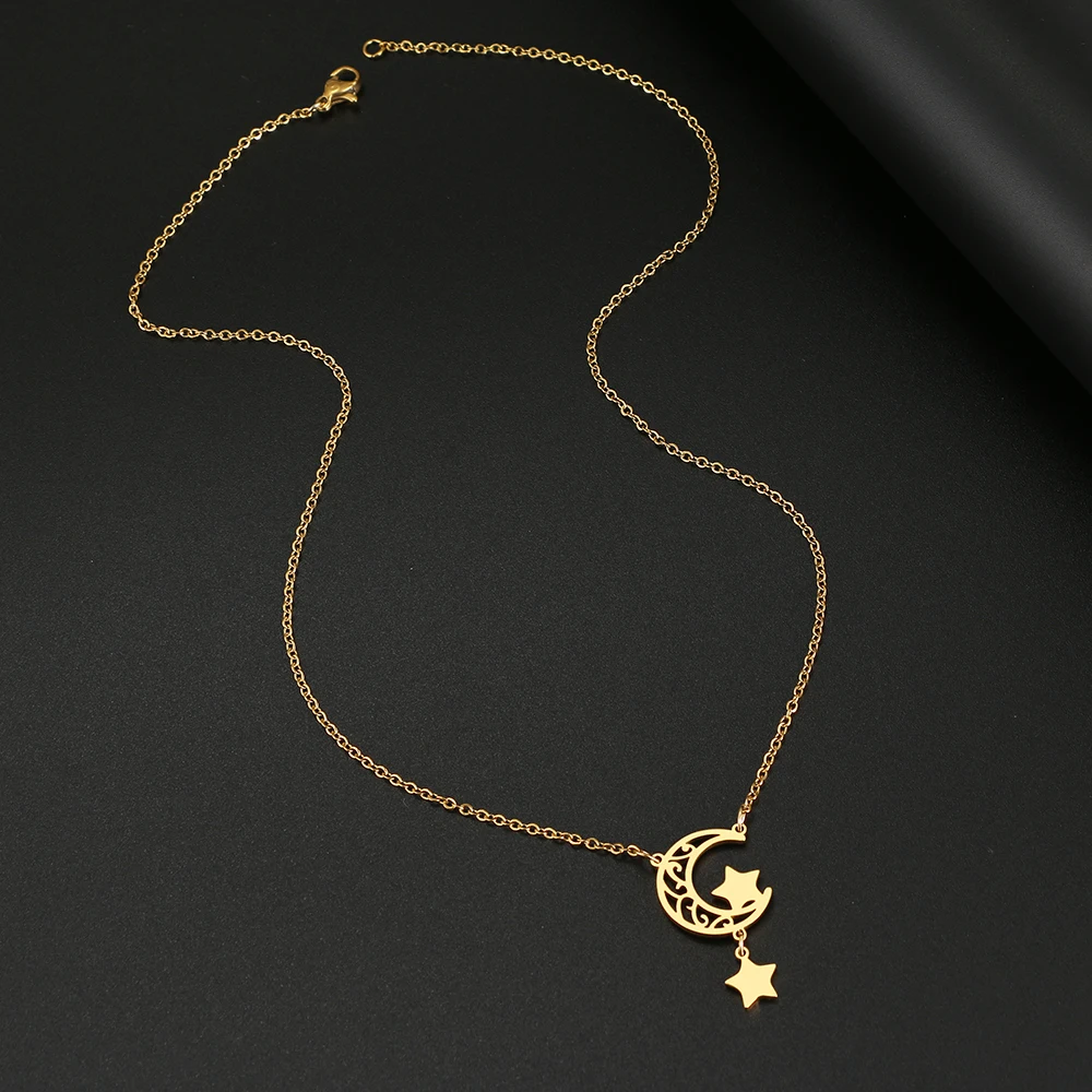 Ожерелья из нержавеющей стали, изысканная Ретро цепочка с подвеской в виде Луны и звезды, изящный чокер, эстетическое модное ожерелье для женщин, ювелирные изделия, подарки