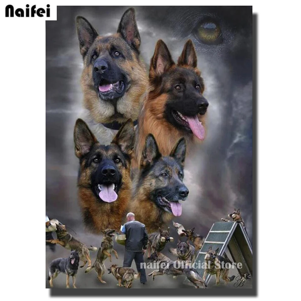 Алмазная 5D картина сделай сам, немецкая овчарка, Алмазная мозаика, квадратные Стразы, алмазная вышивка, Круглые бриллианты