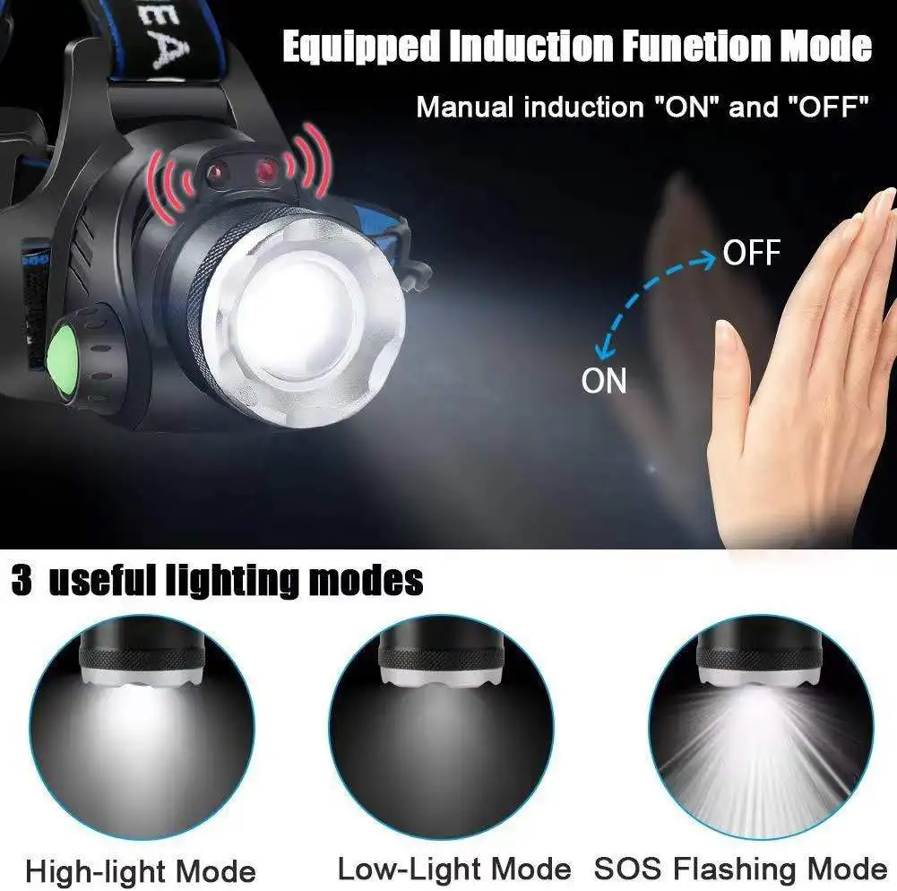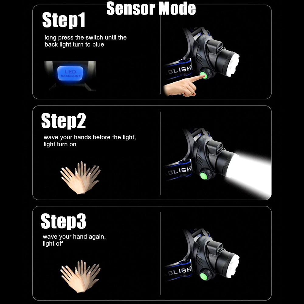 Вы можете выбрать фару с помощью сенсорного переключателя, чтобы освободить руки! Не нужно нажимать переключатель, махать рукой, чтобы включить светильник