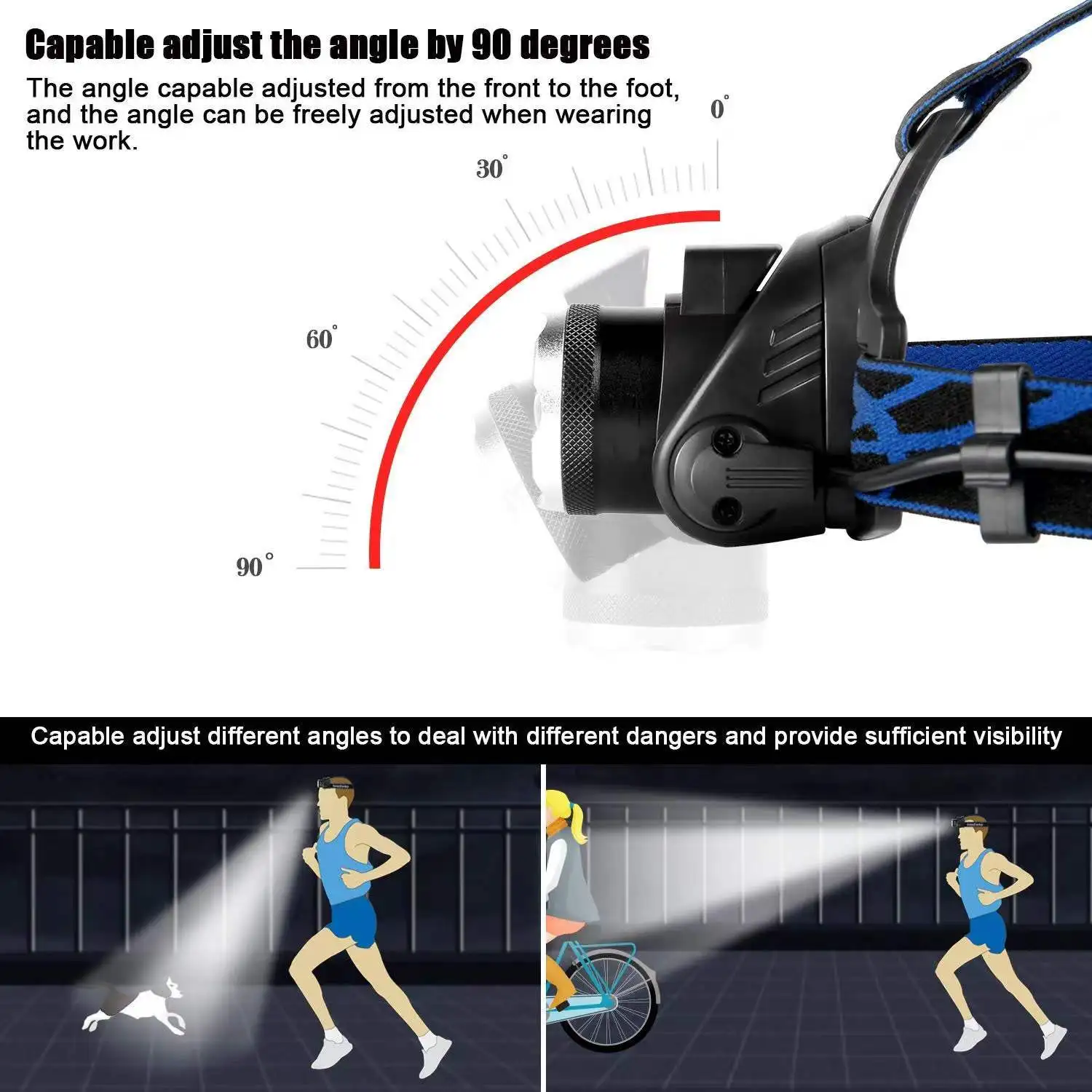 * Регулируемый фокус, масштабируемый светодиодный налобный фонарь