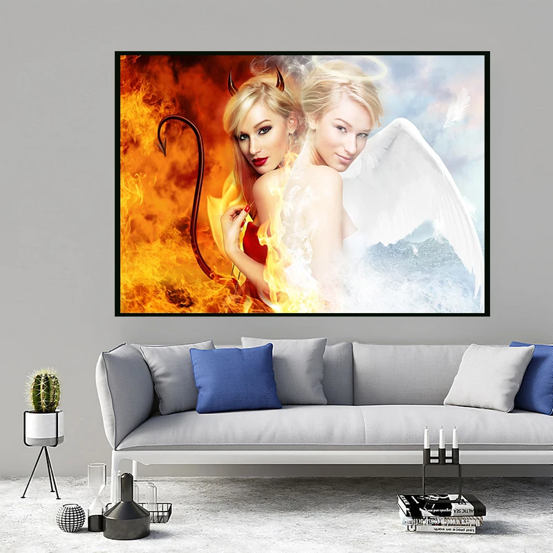 Алмазная живопись 5d "Ангелы", "сделай сам", "Демоны", "Сказочная вышивка крестиком, мозаика, вышивка пейзажем, подарок, искусство ручной работы, домашний декор