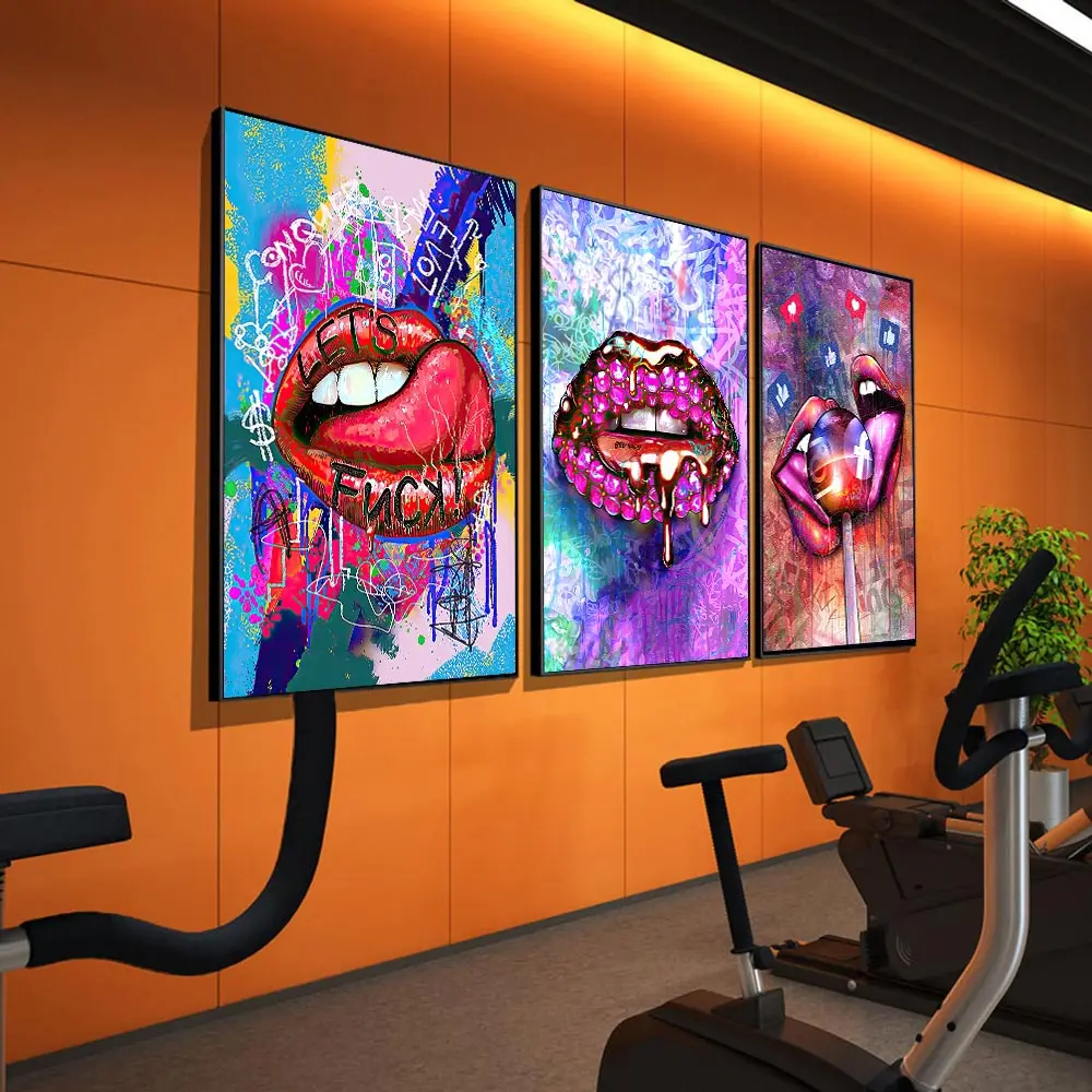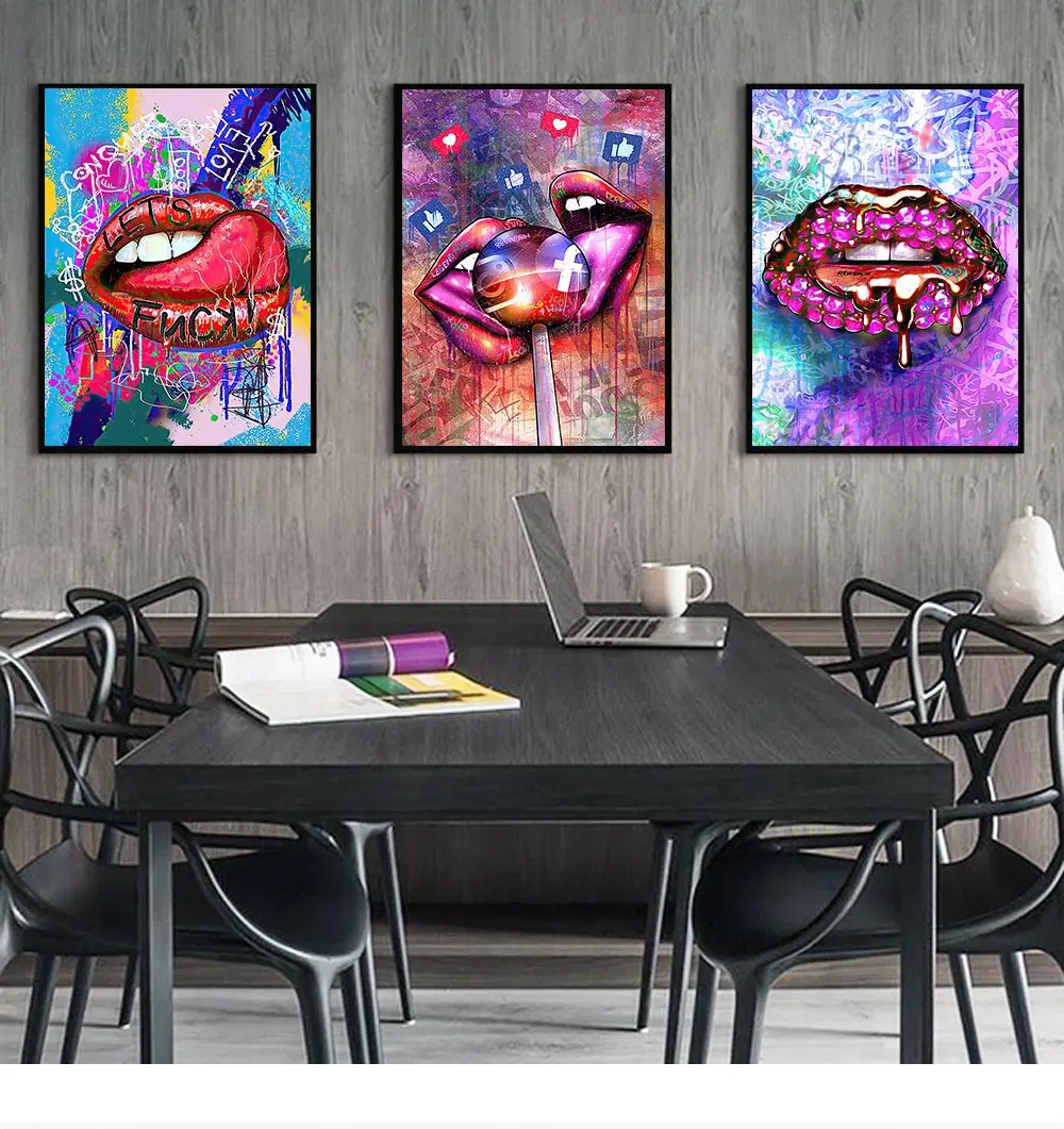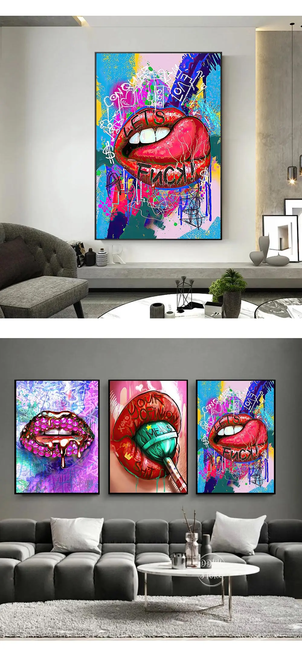 Поп-стрит граффити искусство девушка сексуальные губы Холст Живопись стены Искусство плакаты печать стены картины для спальни дома Настенный декор