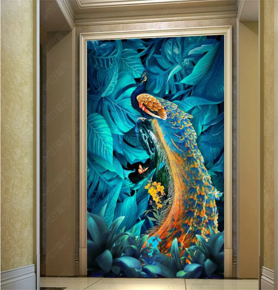 Тропические растения Павлин крыльцо под заказ настенная бумага домашний декор роспись 3d фото настенная бумага для спальни Декор Papel De Parede