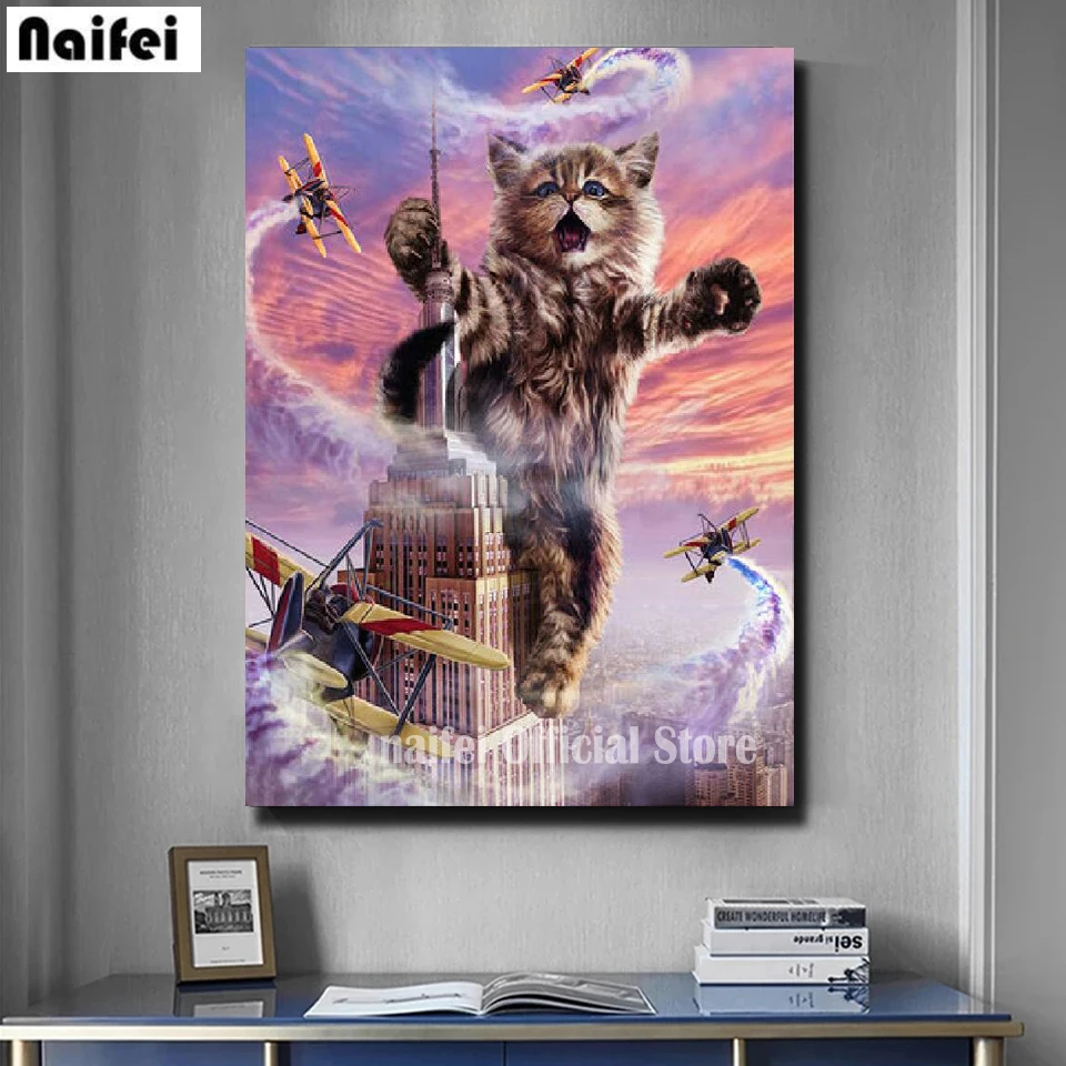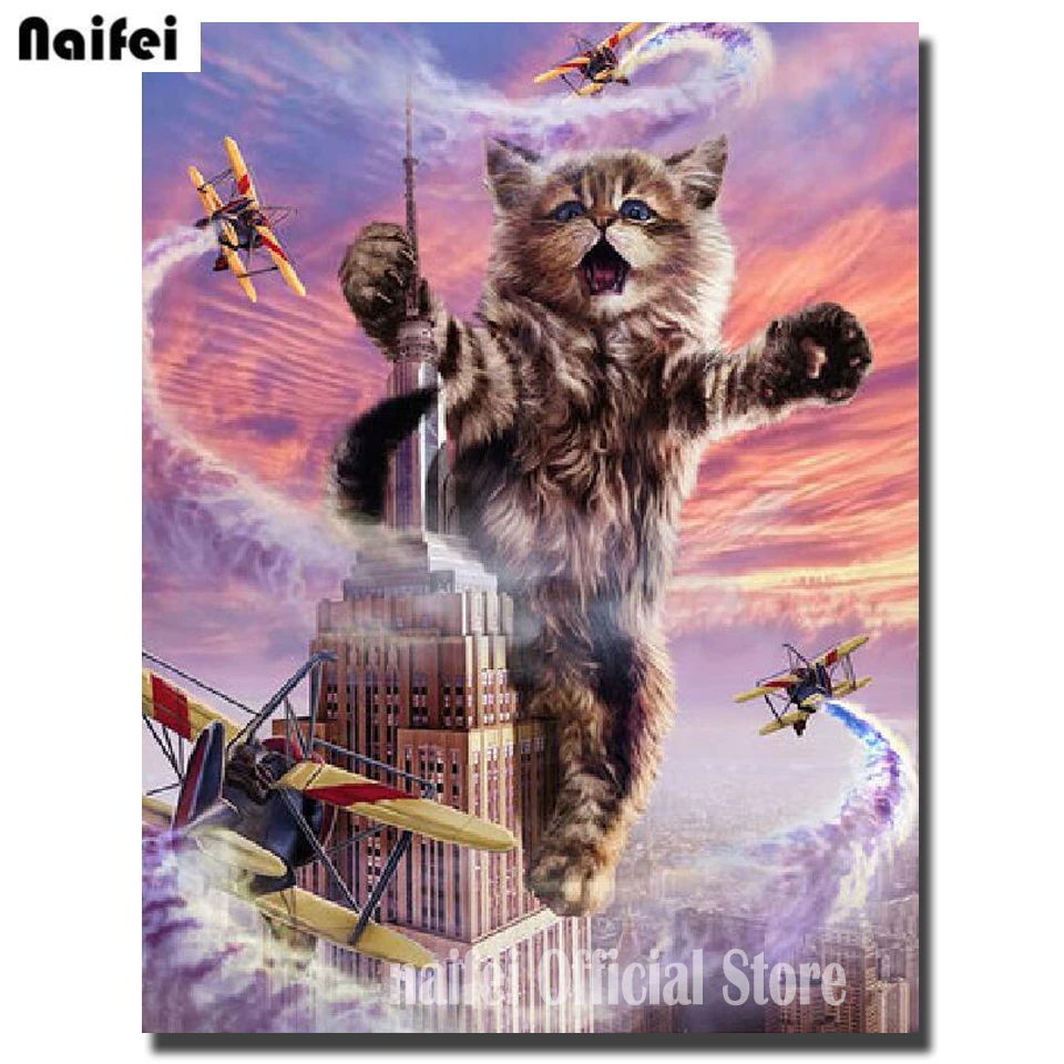 Полная дрель квадратная круглая Алмазная вышивка мультяшный Кот diy Алмазная картина набор значок животных мозаика вышивка крестиком настенный художественный декор,