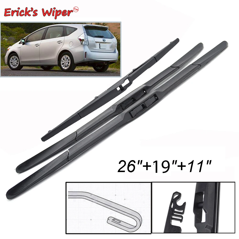 Набор щёток стеклоочистителя Erick's для Toyota Prius V 2012-2017, для лобового стекла, переднего и заднего стекла, 26 + 19 + 11 дюймов