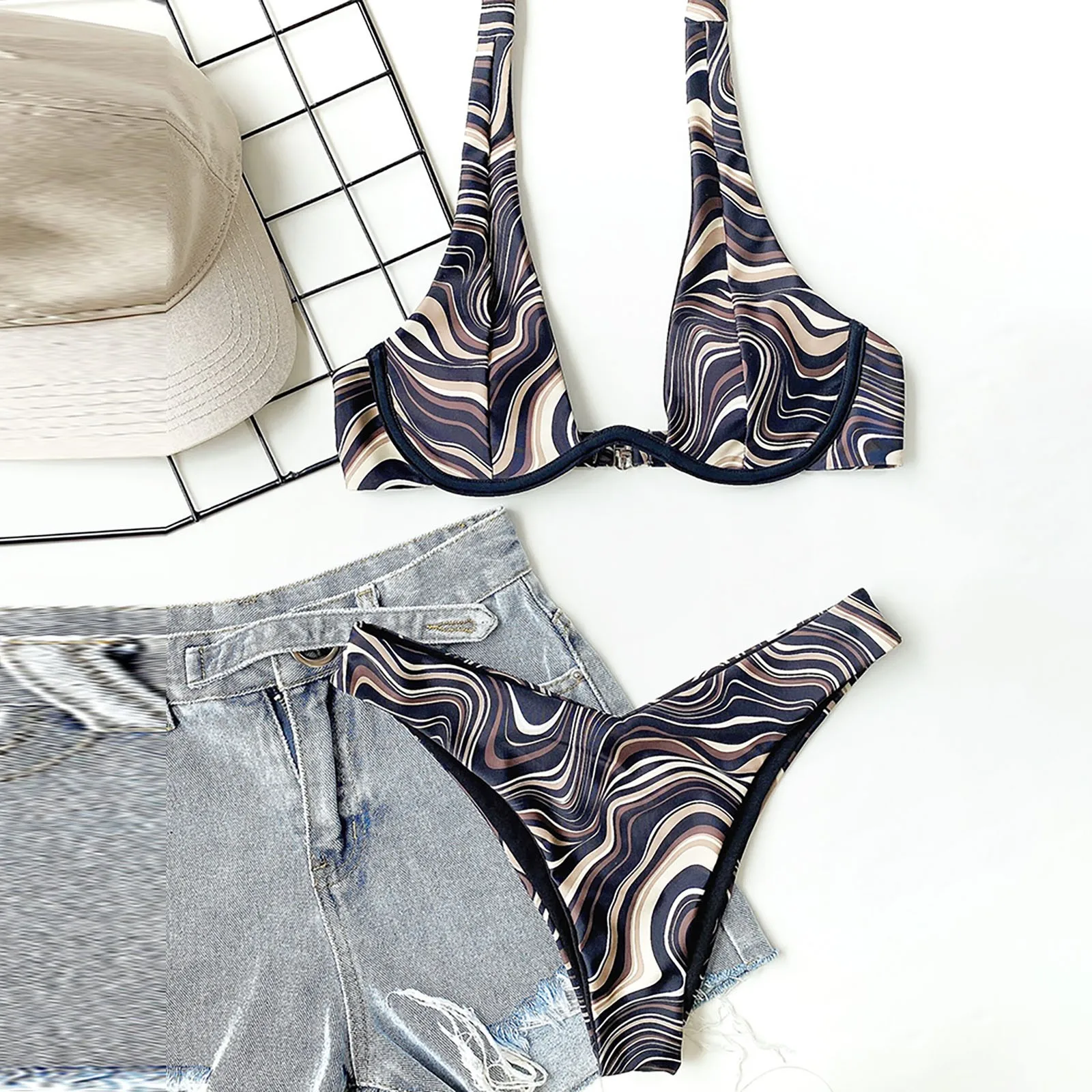 Женский сексуальный Модный Купальник-бикини из двух частей с волнистым песком
