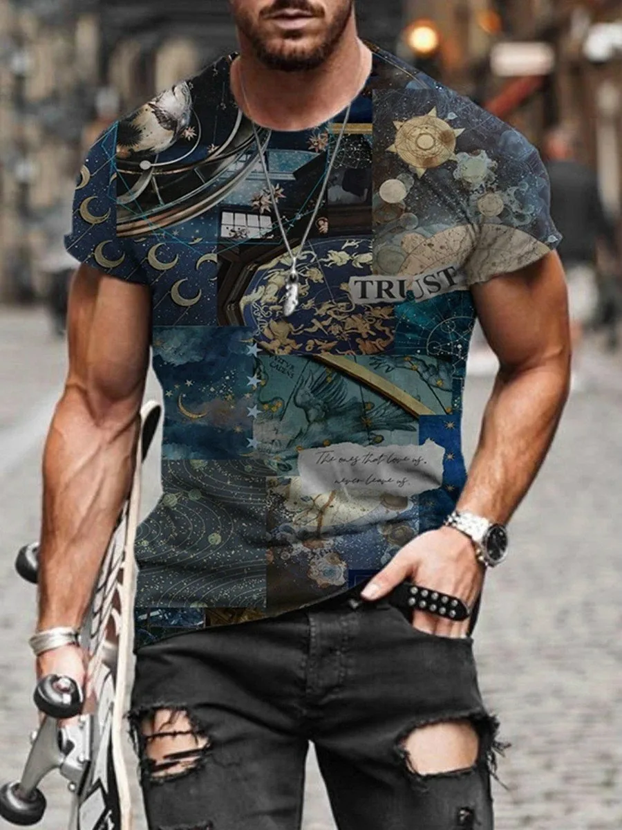 Футболка мужская с 3D-принтом, оверсайз, с компасом, круглым вырезом и коротким рукавом, с перекрестным крестом, Летний стиль
