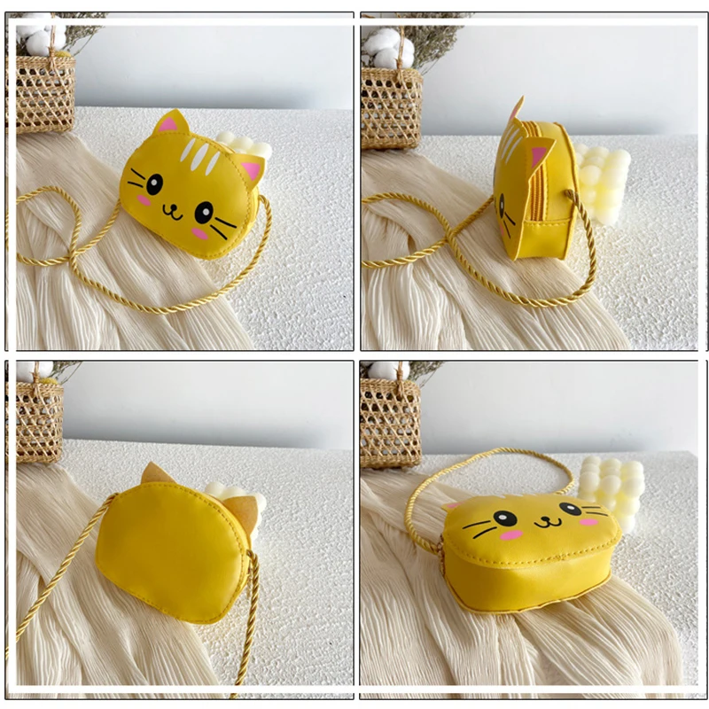 Сумка на плечо с милым котом, детский мессенджер через плечо для девочек, маленькая сумочка из искусственной кожи с мультяшным рисунком, кошелек для мелочи