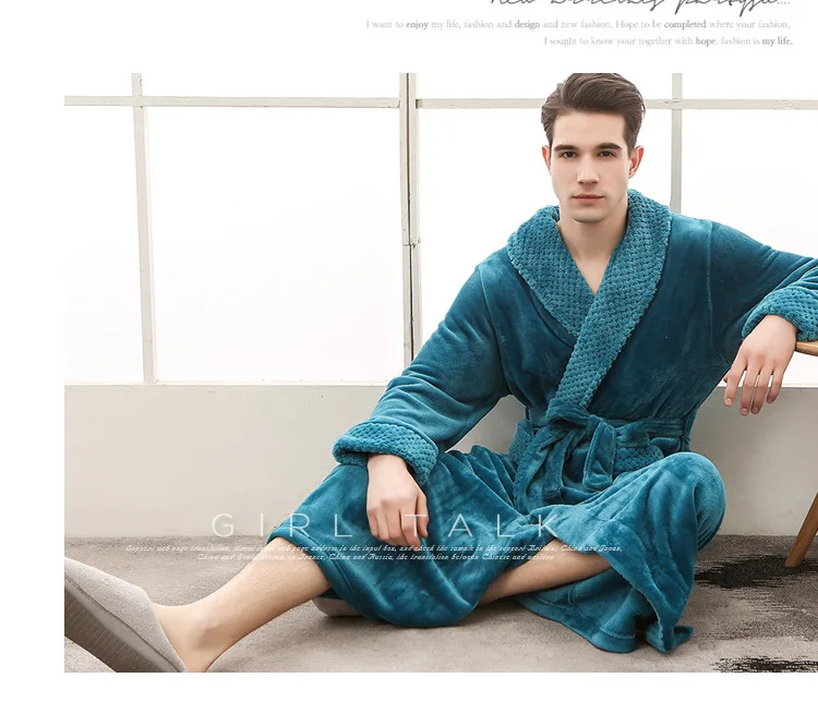 Парные мужские фланелевые халаты, зимнее утепленное кимоно, ночные ...