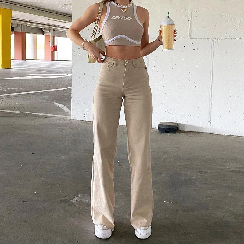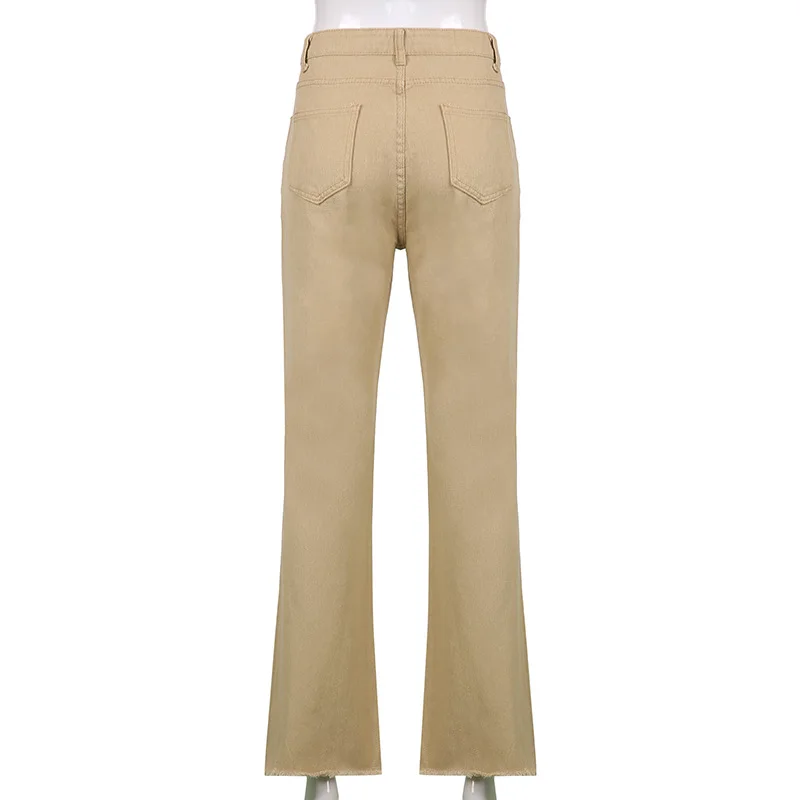Женские прямые джинсы Y2K с высокой талией, джинсы цвета хаки в ули...