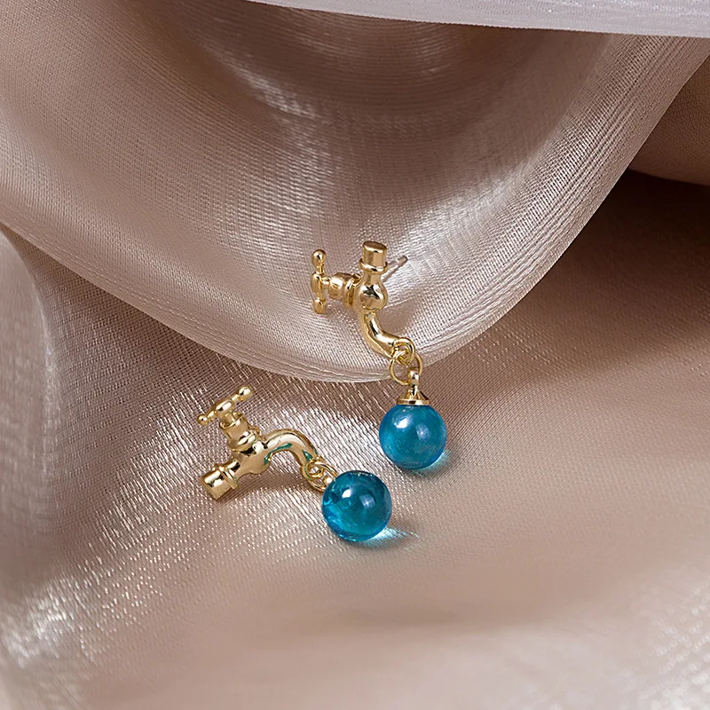Уникальные забавные серьги-гвоздики золотистого цвета с голубым кристаллом для женщин, модные милые корейские ювелирные изделия, Прямая поставка
