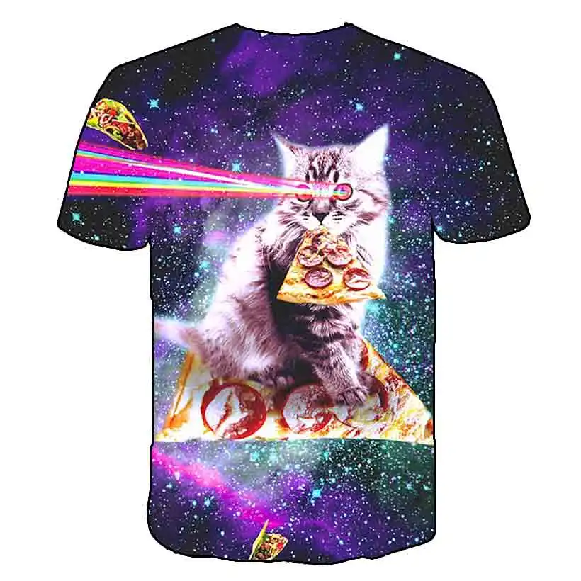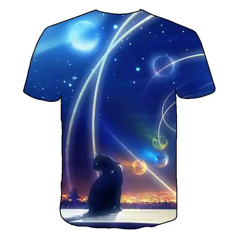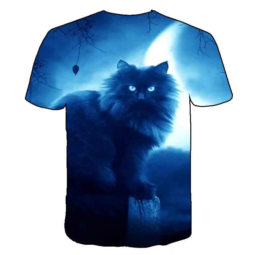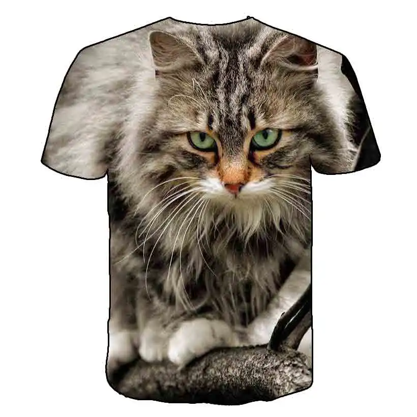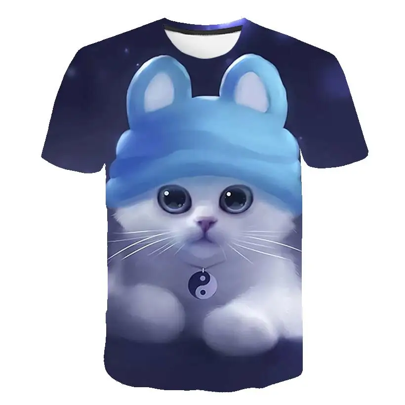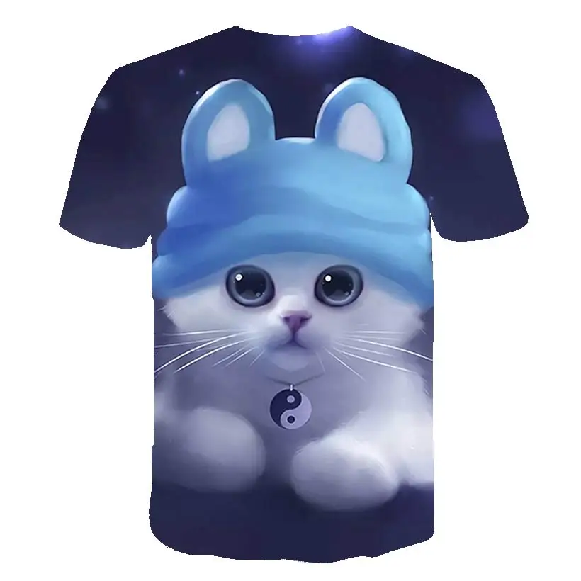 Детская футболка с 3D-принтом кота, с коротким рукавом, 100-160 см