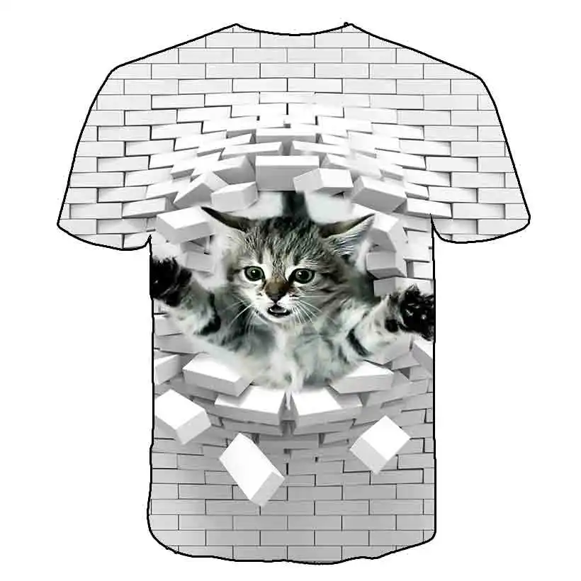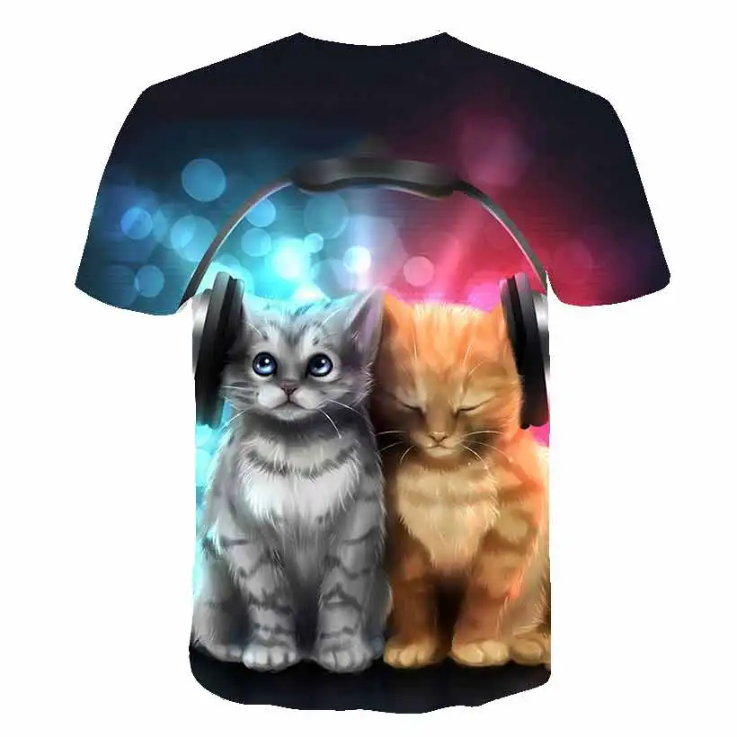 Футболки, одежда для девочек, Детская футболка с 3D изображением животных для мальчиков, детские летние футболки с изображением кота, Милые Забавные футболки для девочек, топы, женские футболки