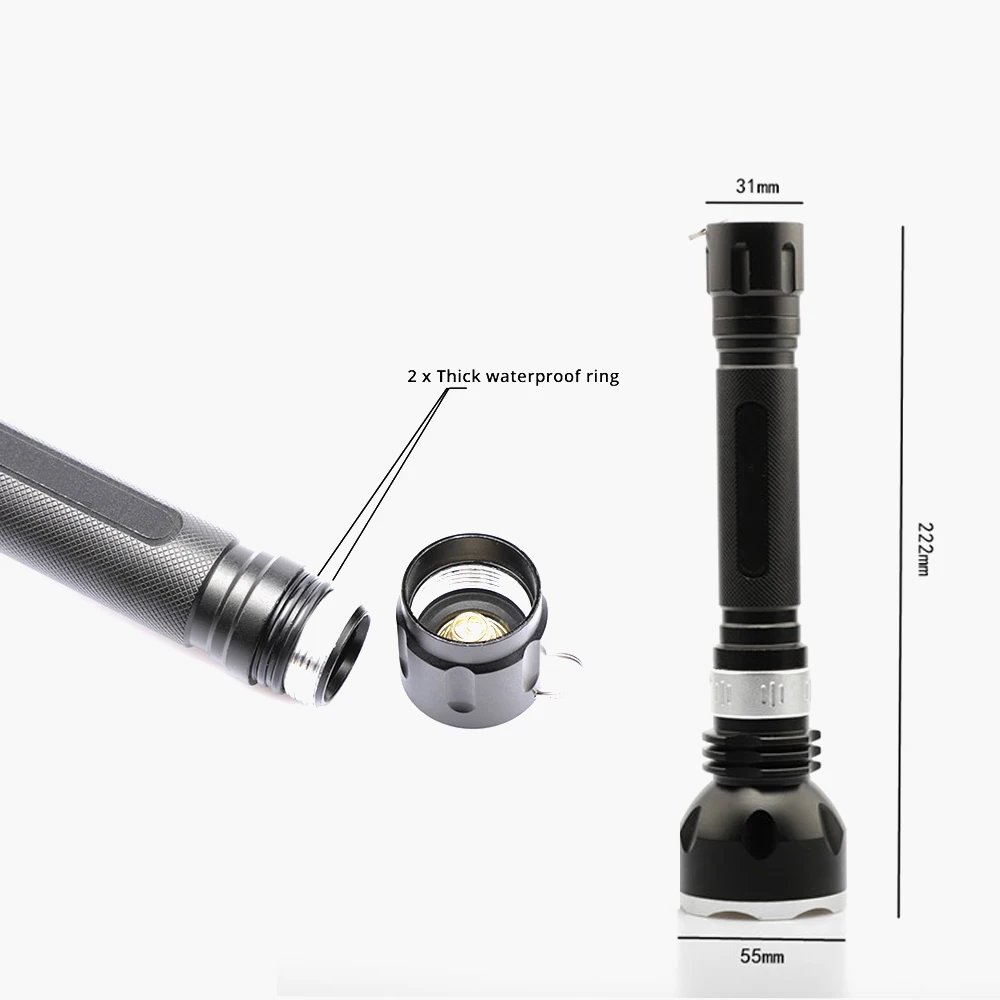 Водонепроницаемый фонарь для дайвинга IP68, профессиональный фонарь для дайвинга 100 м, подводный фонарь с поворотным сенсорным переключателем, 5 светильник МОВ освещения, подводный фонарь