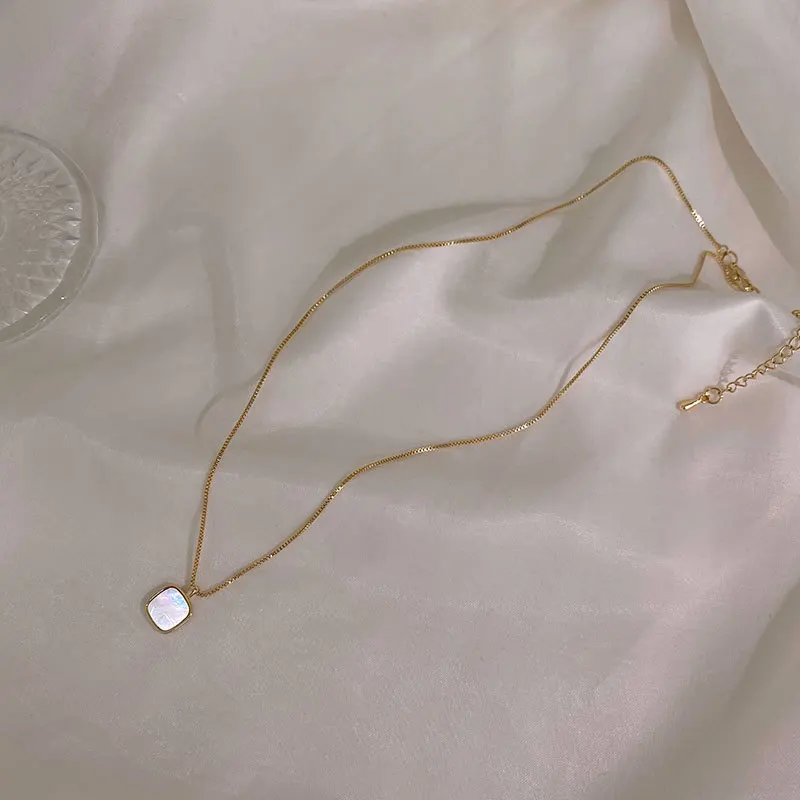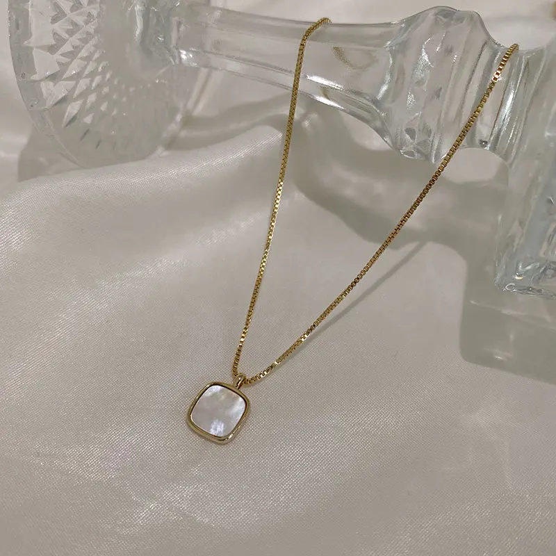 Женское ожерелье из серебра 925 пробы, с квадратной ракушкой