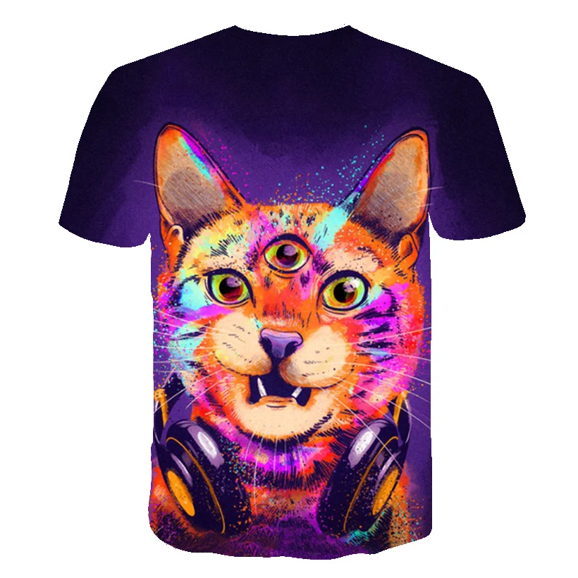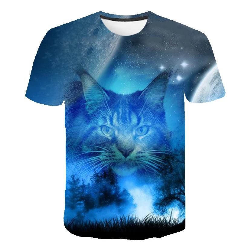 Новая летняя футболка с 3D принтом кота, Повседневная футболка с ко...