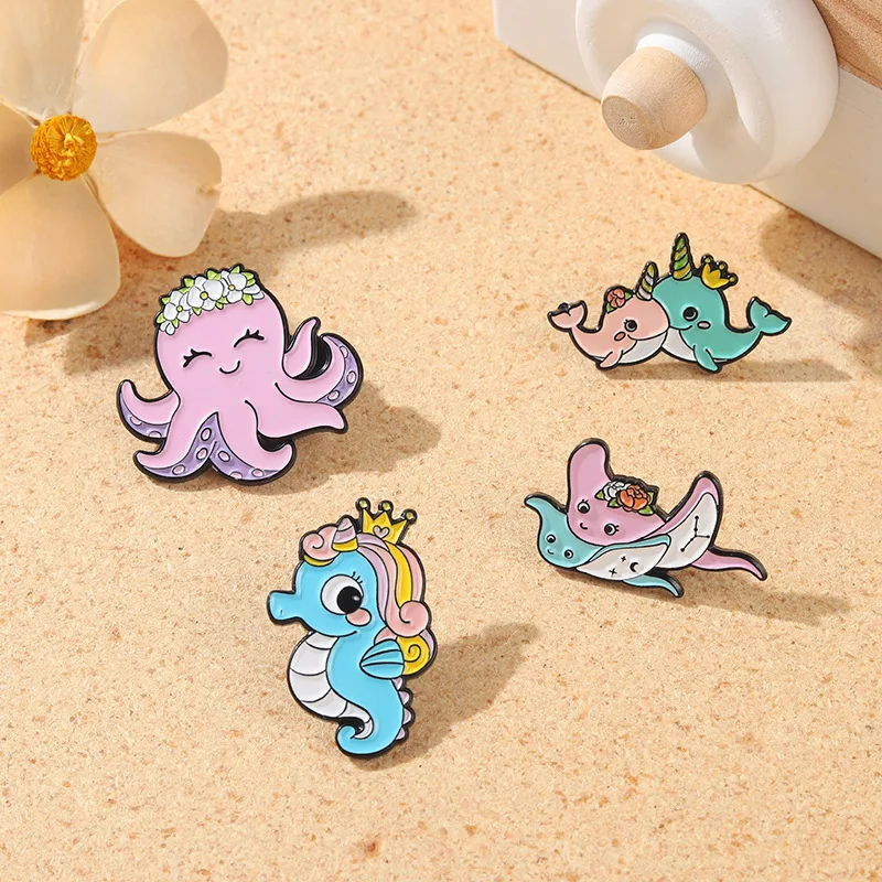 Эмалированная брошь в виде Милого Животного, морская жизнь, Цветные булавки из сплава в виде дельфина, Кита, морской лошади, осьминога, аксессуары для одежды, Женские Ювелирные изделия, подарки
