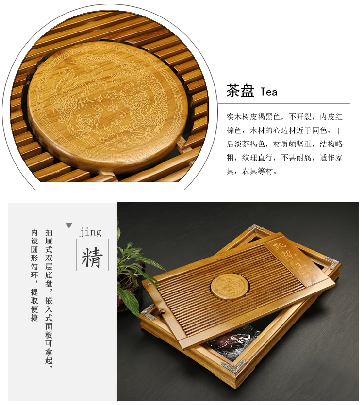 Женский чайный поднос, посуда для чая, семейный чайный набор, вырезной столик, ящик для хранения, дренажная чайная доска, винтажный домашний декор