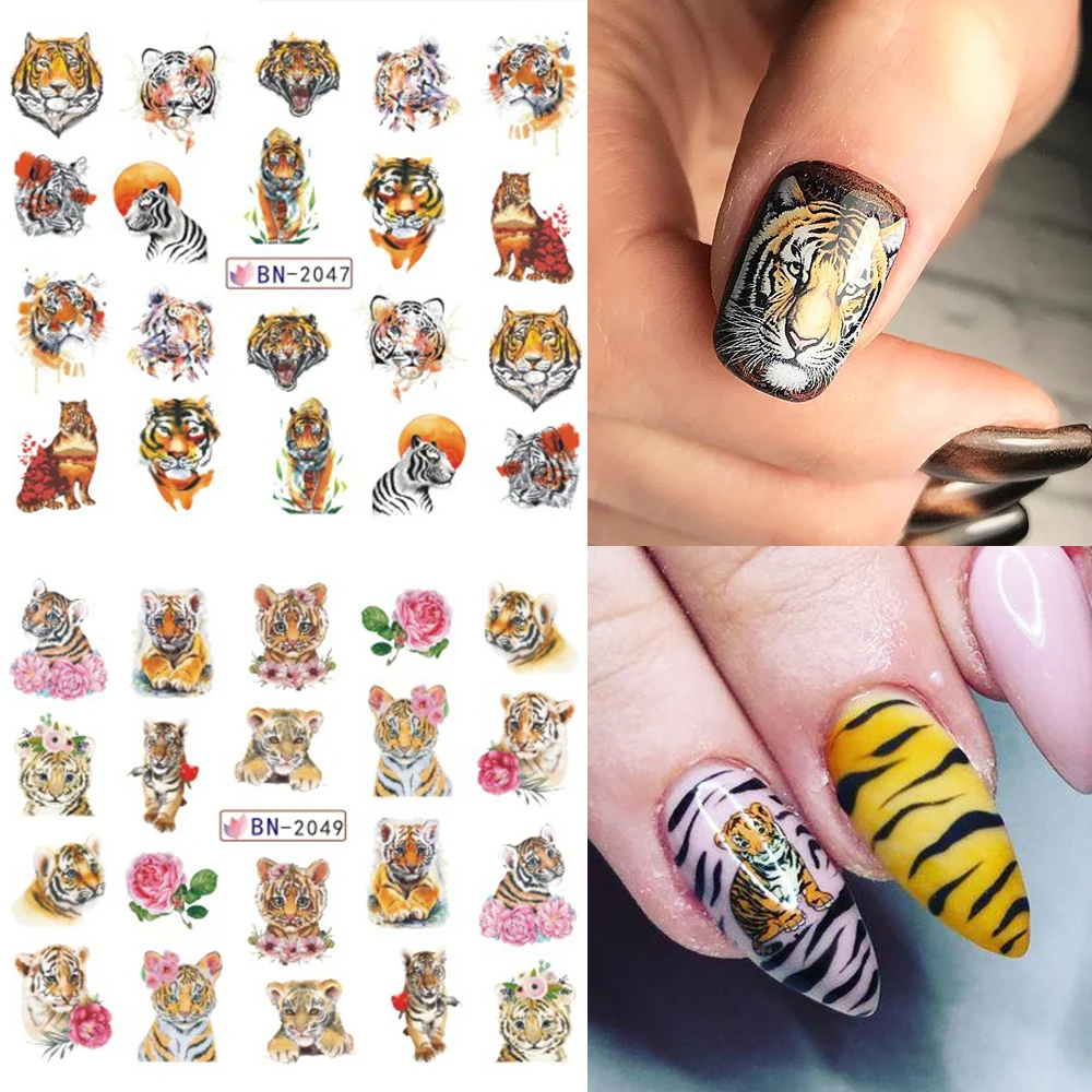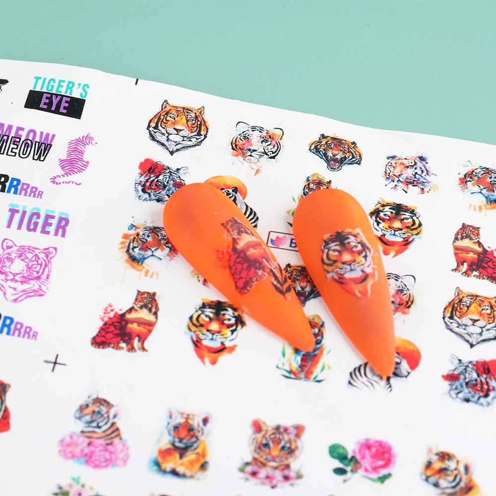 12 шт., 3D-наклейки для ногтей в виде тигра