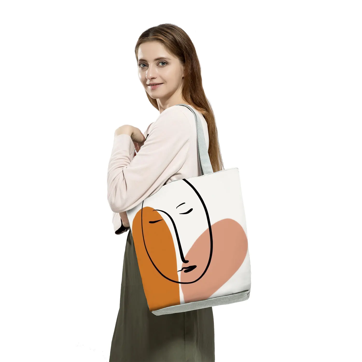 Сумка в минималистическом стиле с абстрактным рисунком листьев для девочек, многоразовая сумка для покупок, новинка 2022, Модная Портативная сумка через плечо