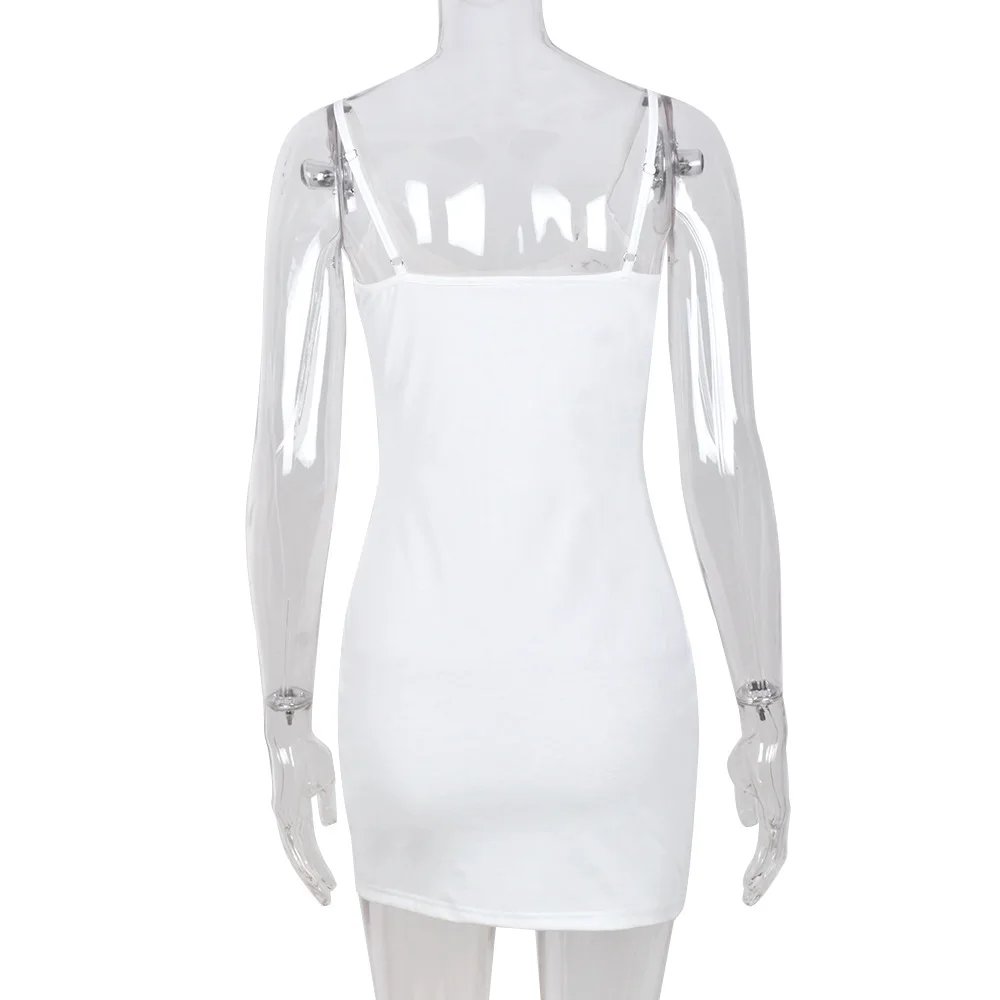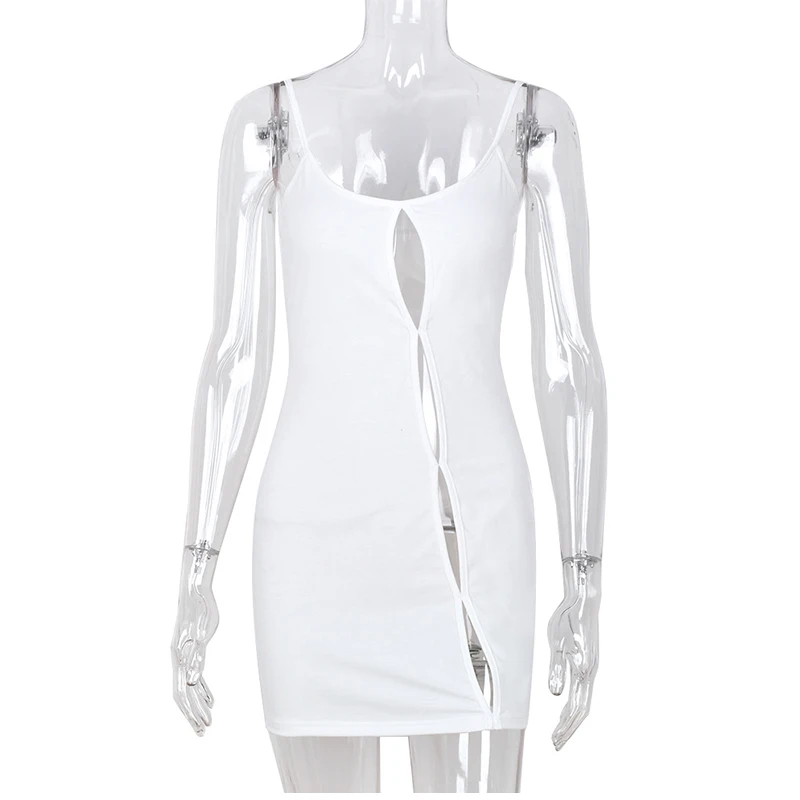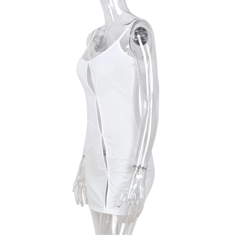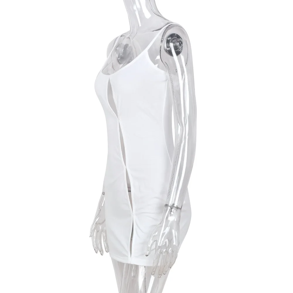 Летнее мини-платье на бретелях-спагетти с вырезами, Белое Облегающее платье без рукавов, сексуальное платье для вечерние ринки, клуба, пляжа, платье на бретелях