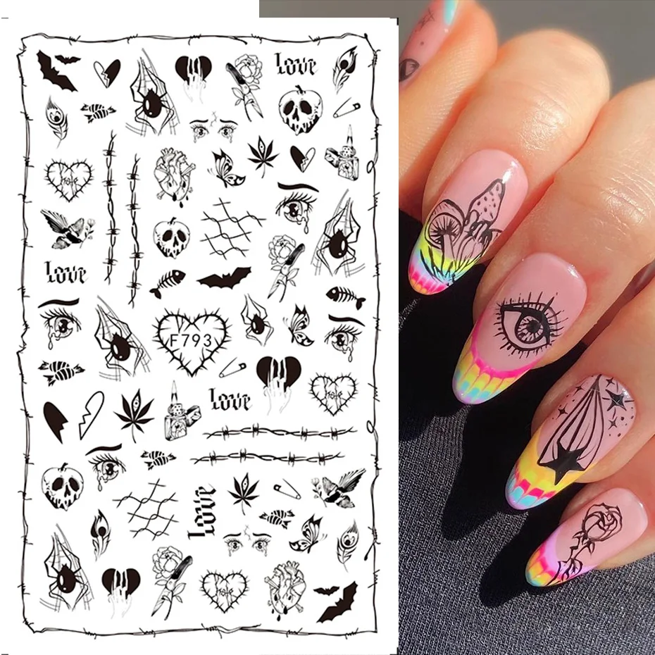 ItemsBlack Snake Nail Sticker Letter Abstract Face Nail Decals Tattoos Tips