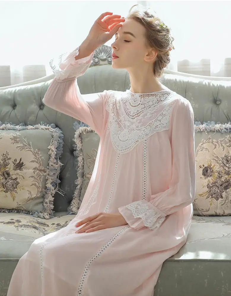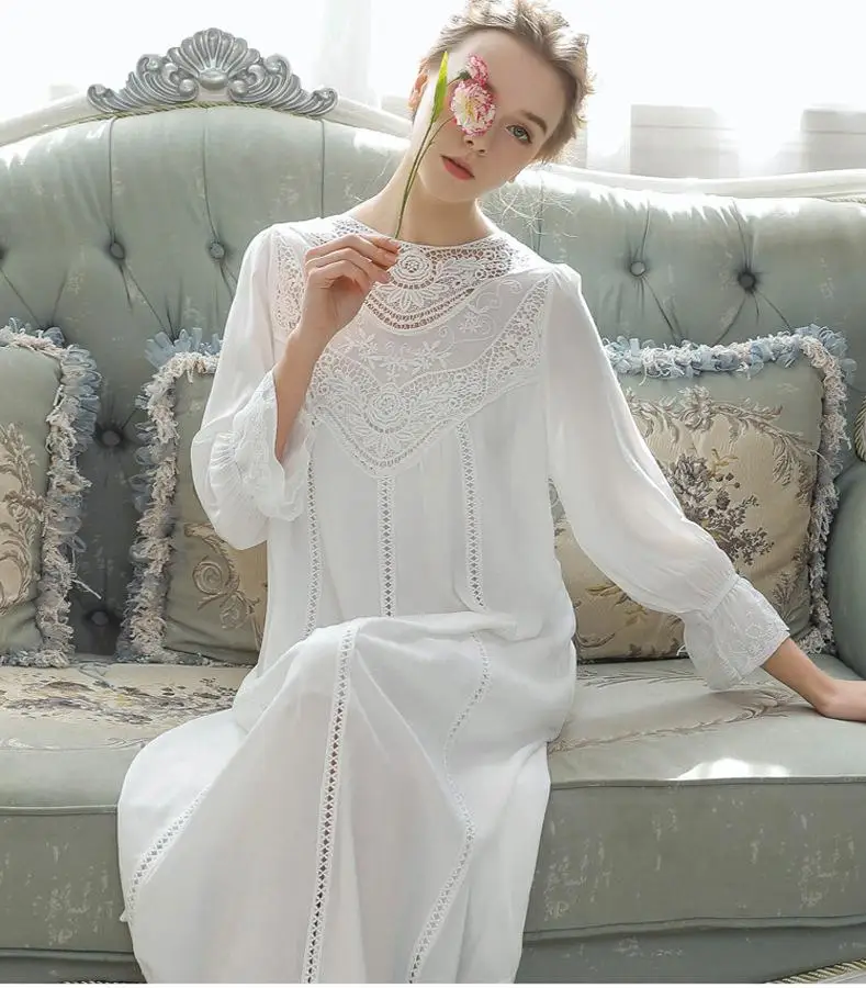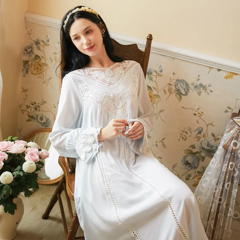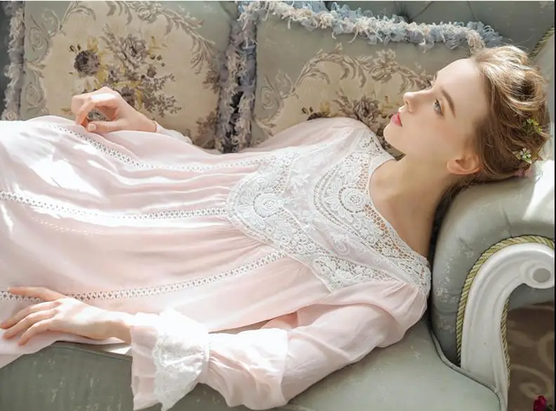 Женская кружевная регулируемая сексуальная ночная рубашка с длинным рукавом, повседневная женская ночная рубашка в стиле принцессы, ночная рубашка для отдыха