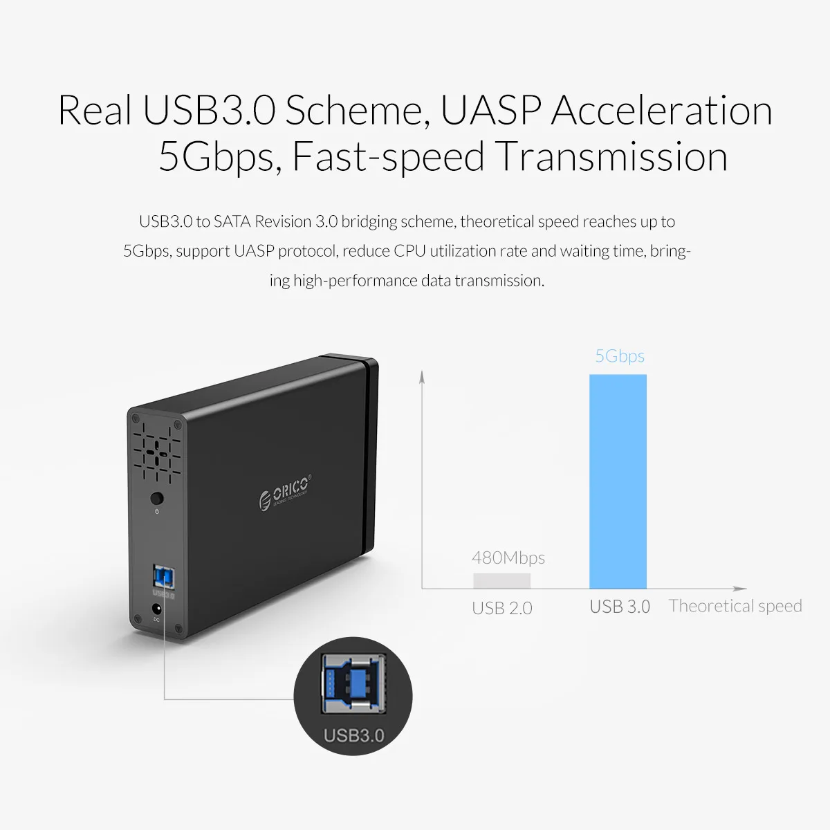 Корпус ORICO для жесткого диска 3,5 дюйма, корпус из алюминиевого сплава с последовательным портом для жесткого диска USB3.0, внешний мобильный корпус для жесткого диска