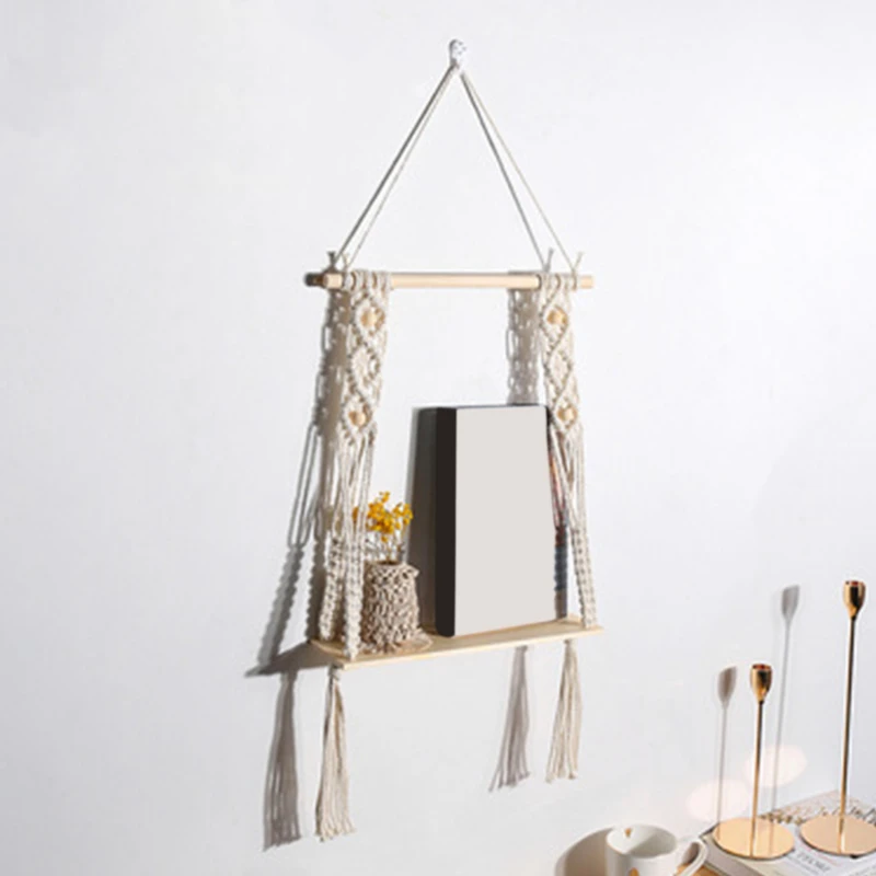 Богемный гобелен из макраме настенная полка для хранения деревянная...